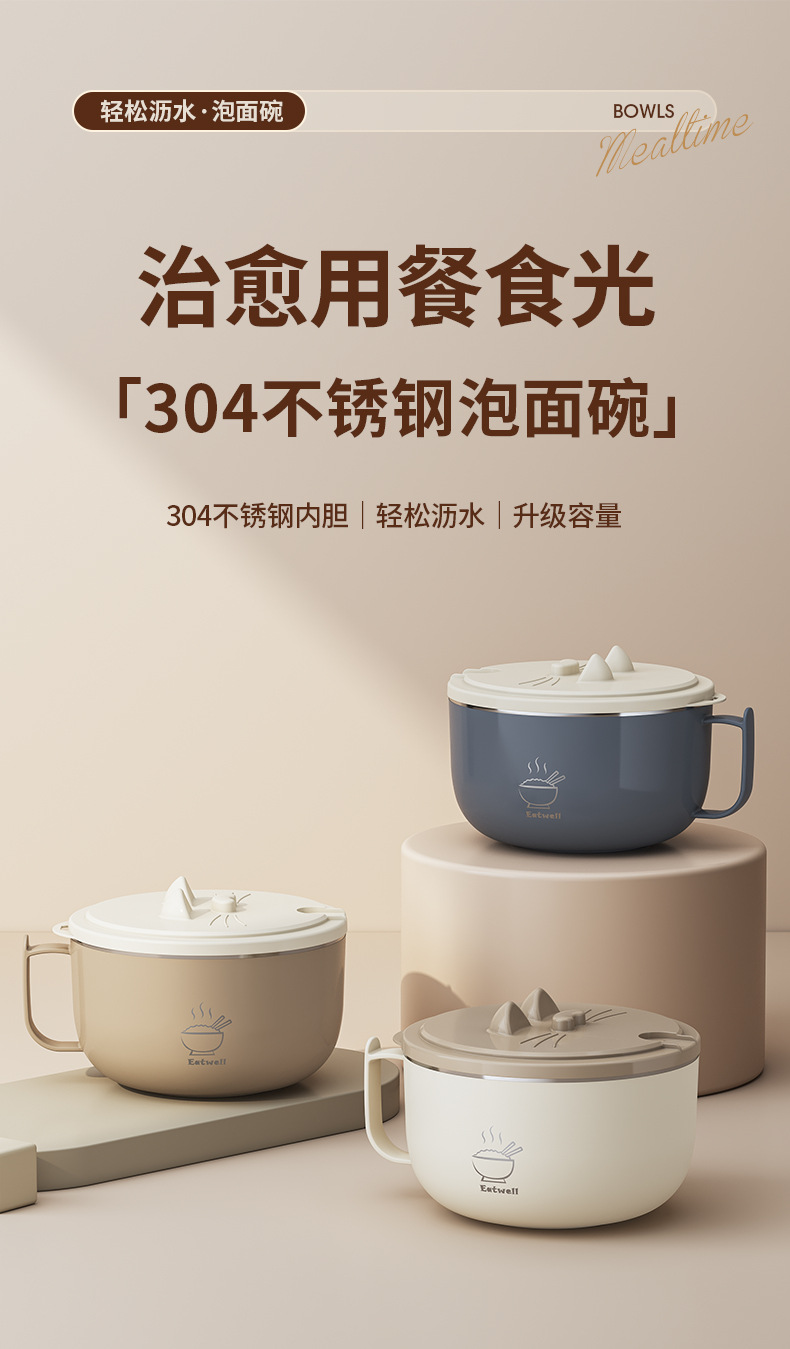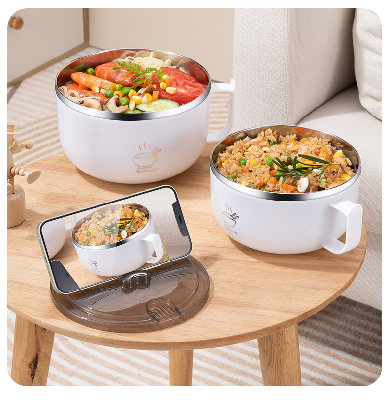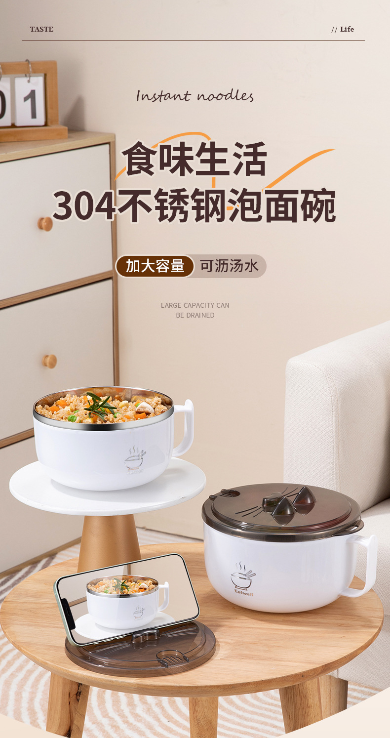 304 스테인레스 스틸 인스턴트 국수 그릇 배수 도시락 일본 도시락 학생 기숙사 밥 그릇 인쇄 가능한 로고 선물