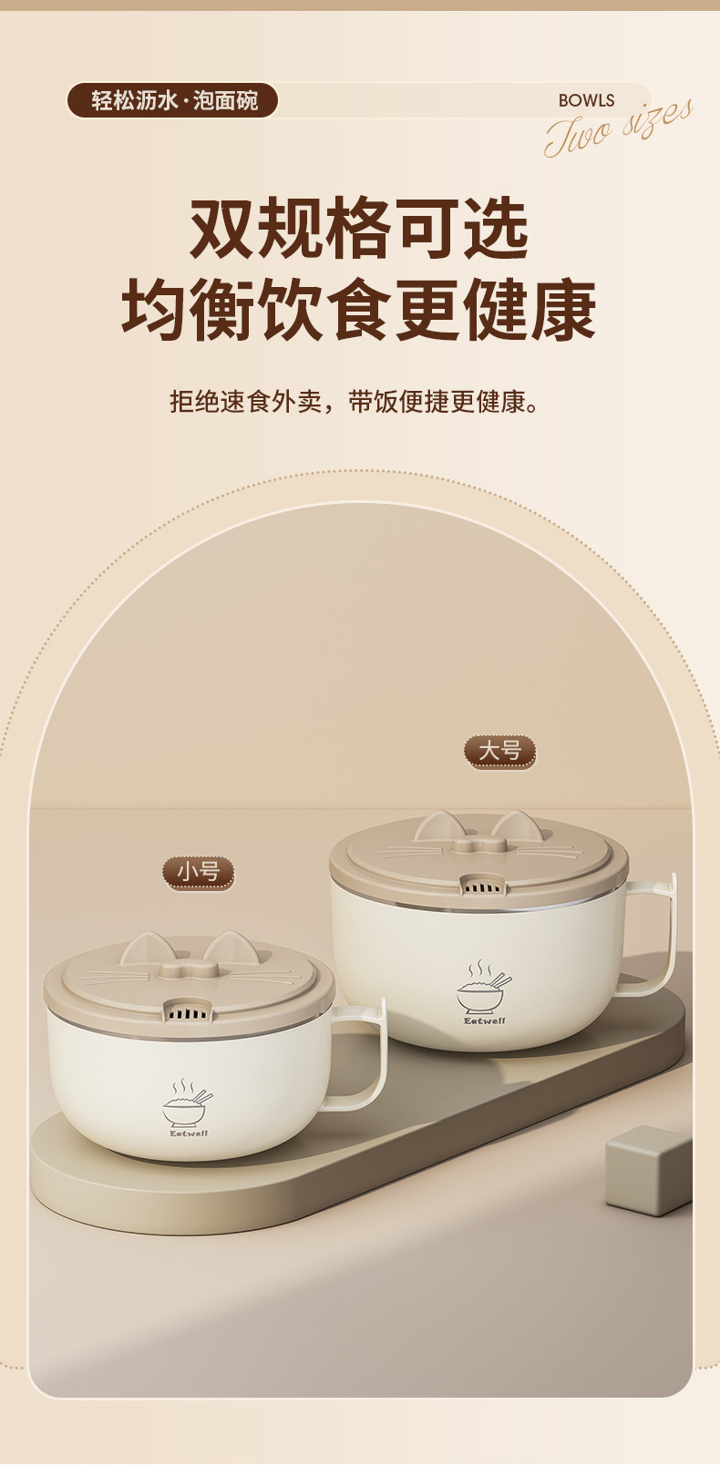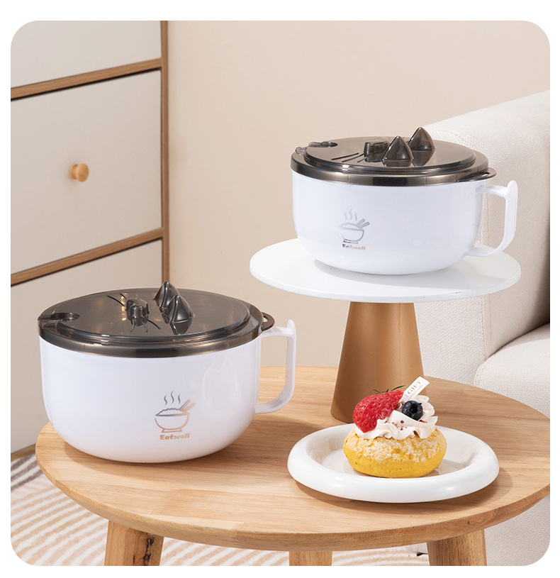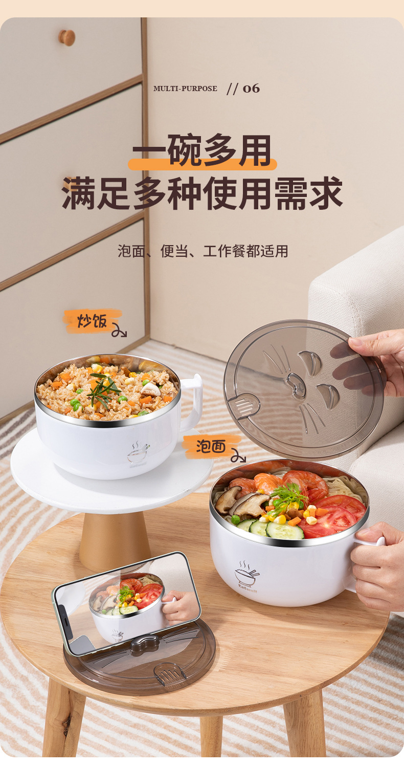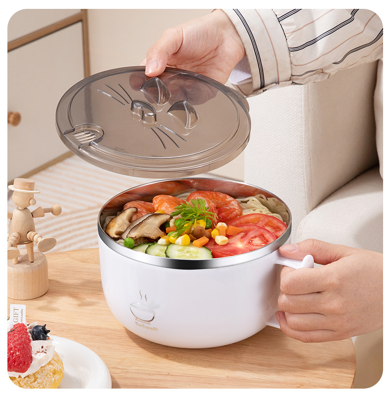 304 스테인레스 스틸 인스턴트 국수 그릇 배수 도시락 일본 도시락 학생 기숙사 밥 그릇 인쇄 가능한 로고 선물스토어 가기