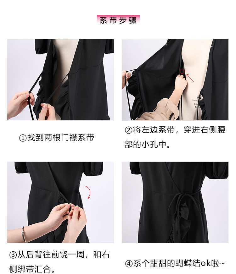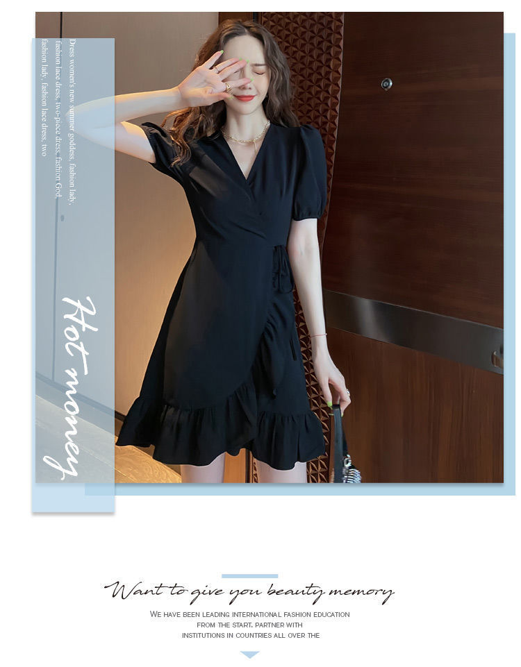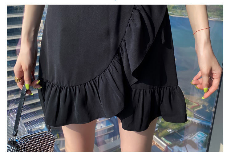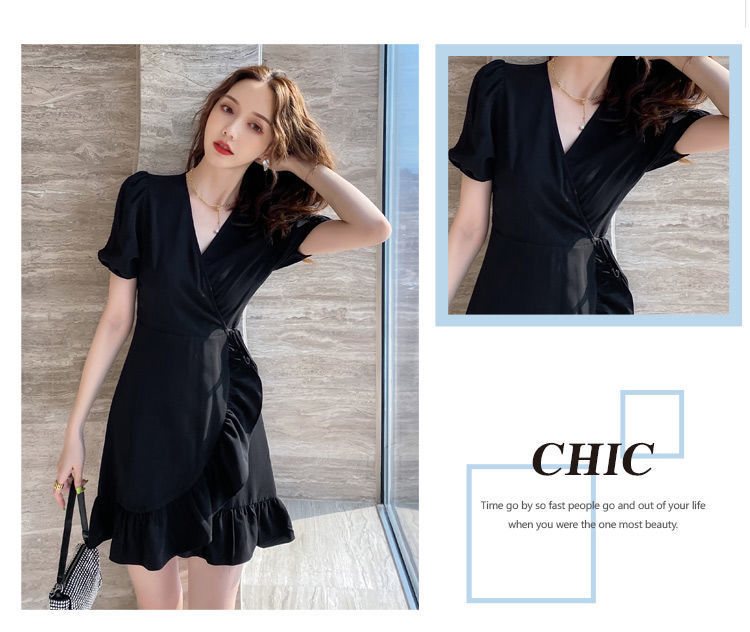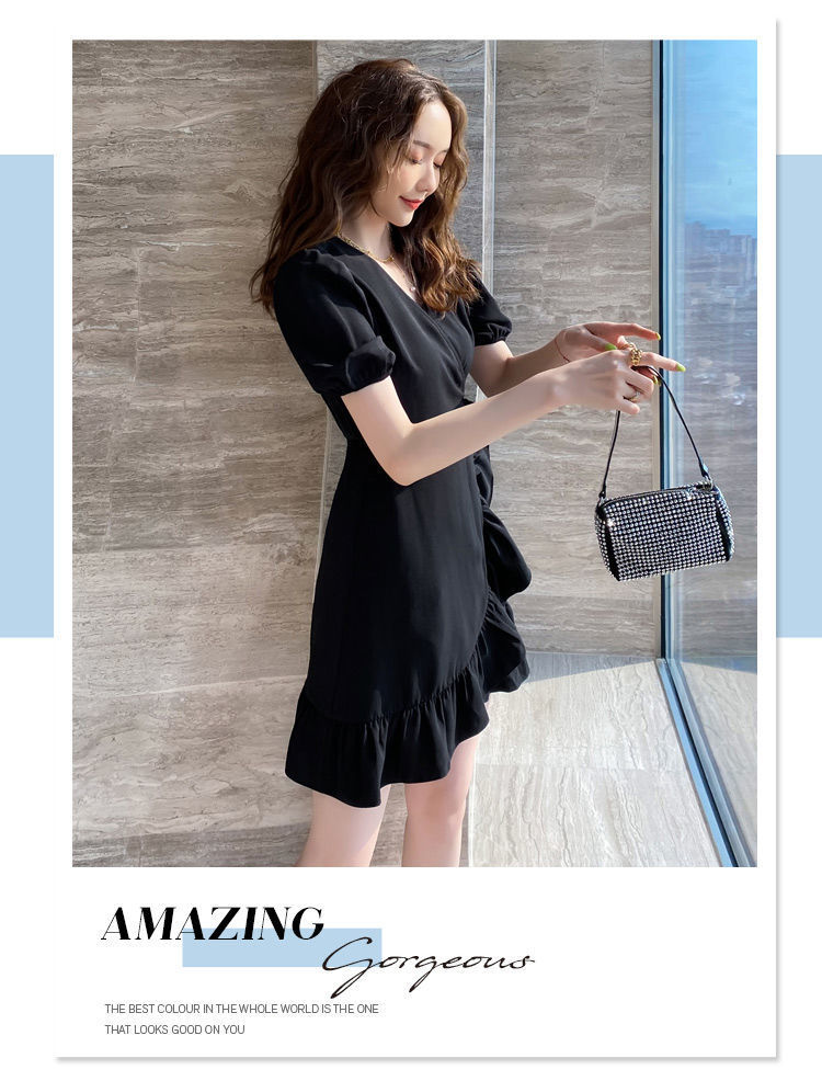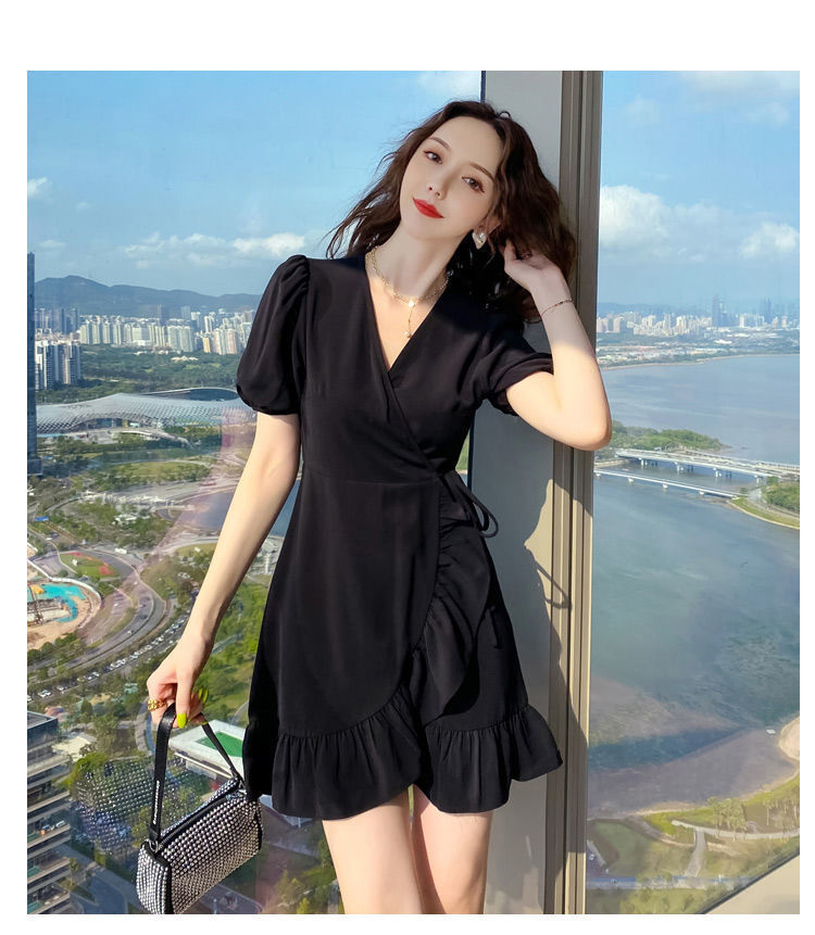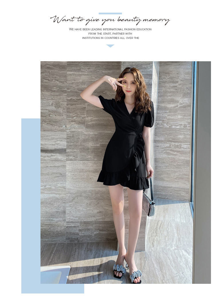 프랑스 퍼프 슬리브 원피스 여성 여름 2024 새로운 스타일 작은 하이 엔드 슬리밍 러플 블랙 스커트스토어 가기