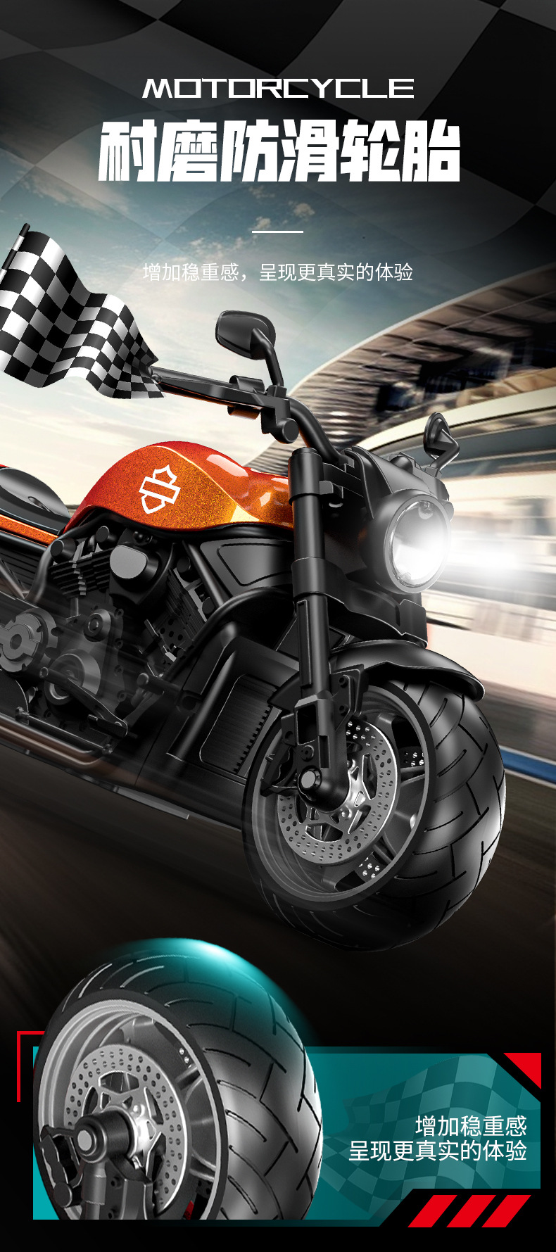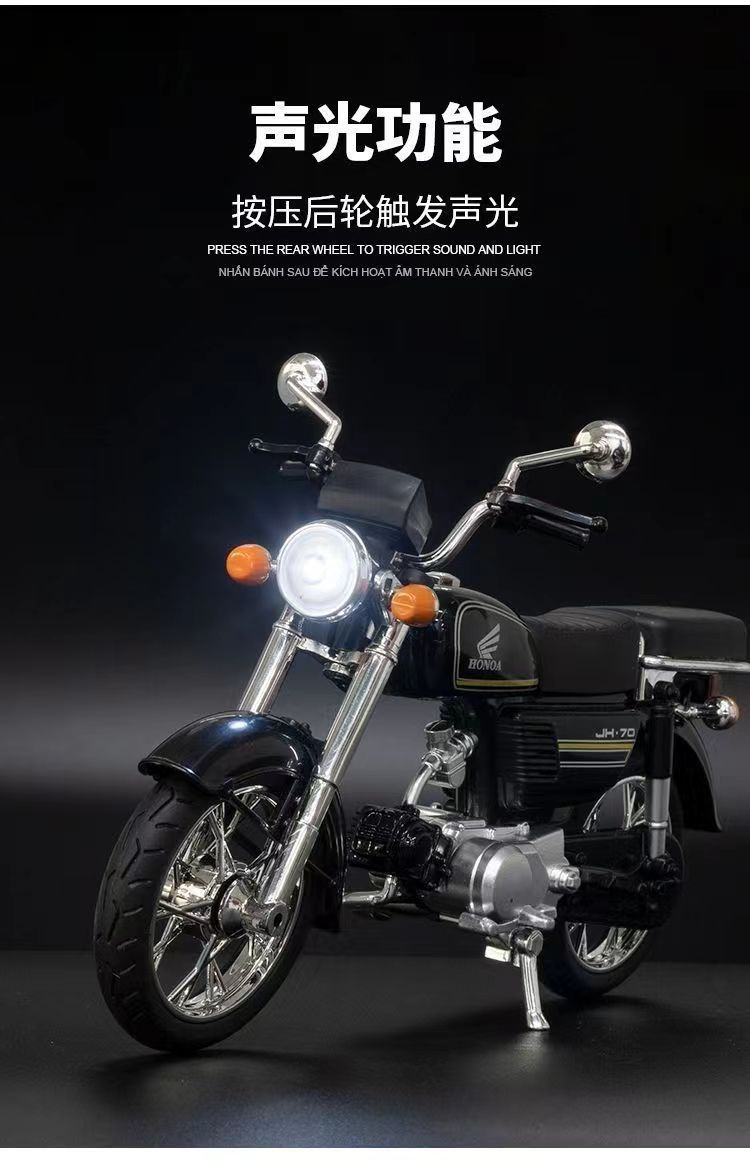 사운드 및 라이트 백 69 레이싱 기관차 어린이 장난감 도매 국경 시뮬레이션 합금 오토바이 모델 장식품