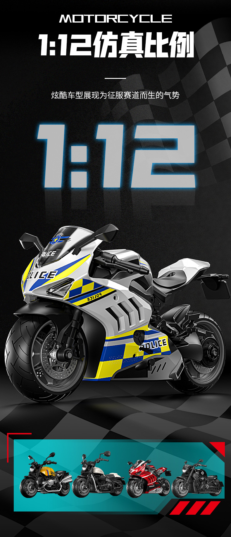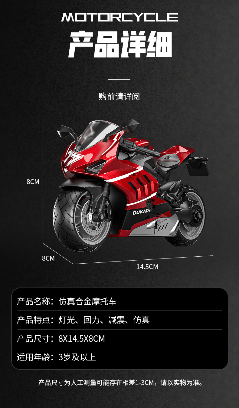 사운드 및 라이트 백 69 레이싱 기관차 어린이 장난감 도매 국경 시뮬레이션 합금 오토바이 모델 장식품스토어 가기