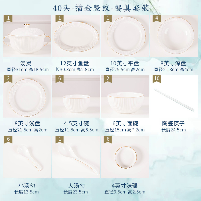 유럽 스타일 그릇 접시 식기 세트 가정용 빛 럭셔리 Jingdezhen 세라믹 손으로 그린 프놈펜 그릇 및 젓가락 세트 집들이 선물스토어 가기