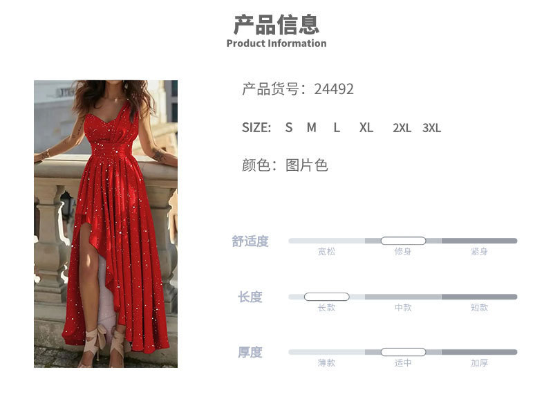 국경 2025 새로운 유럽과 미국의 대외 무역 여성의 원피스 기질 비스듬한 어깨 높은 허리 긴 치마 불규칙한 유럽과 미국 원피스스토어 가기