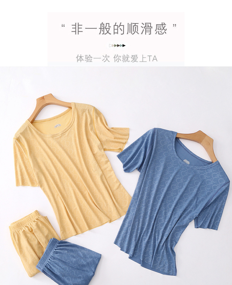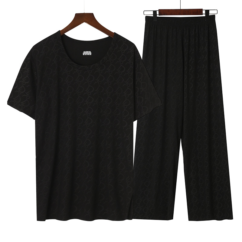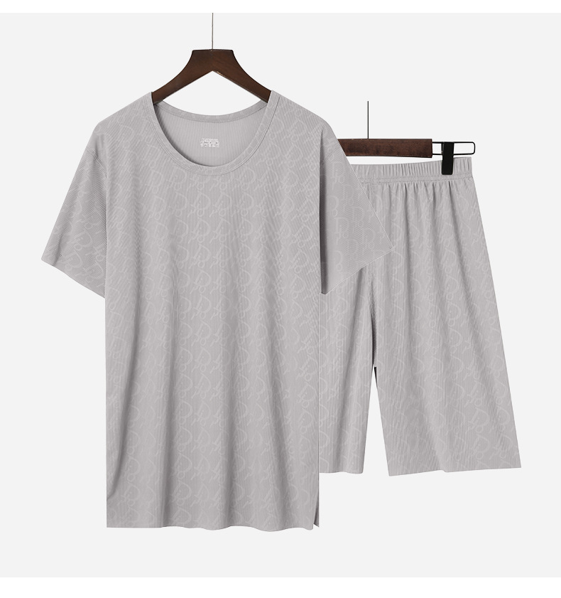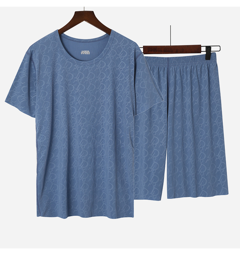 반팔 파자마 긴 반바지 2 피스 얇은 통기성 캐주얼 홈 의류 세트 남성용 스레드 아이스 래핑 티셔츠스토어 가기