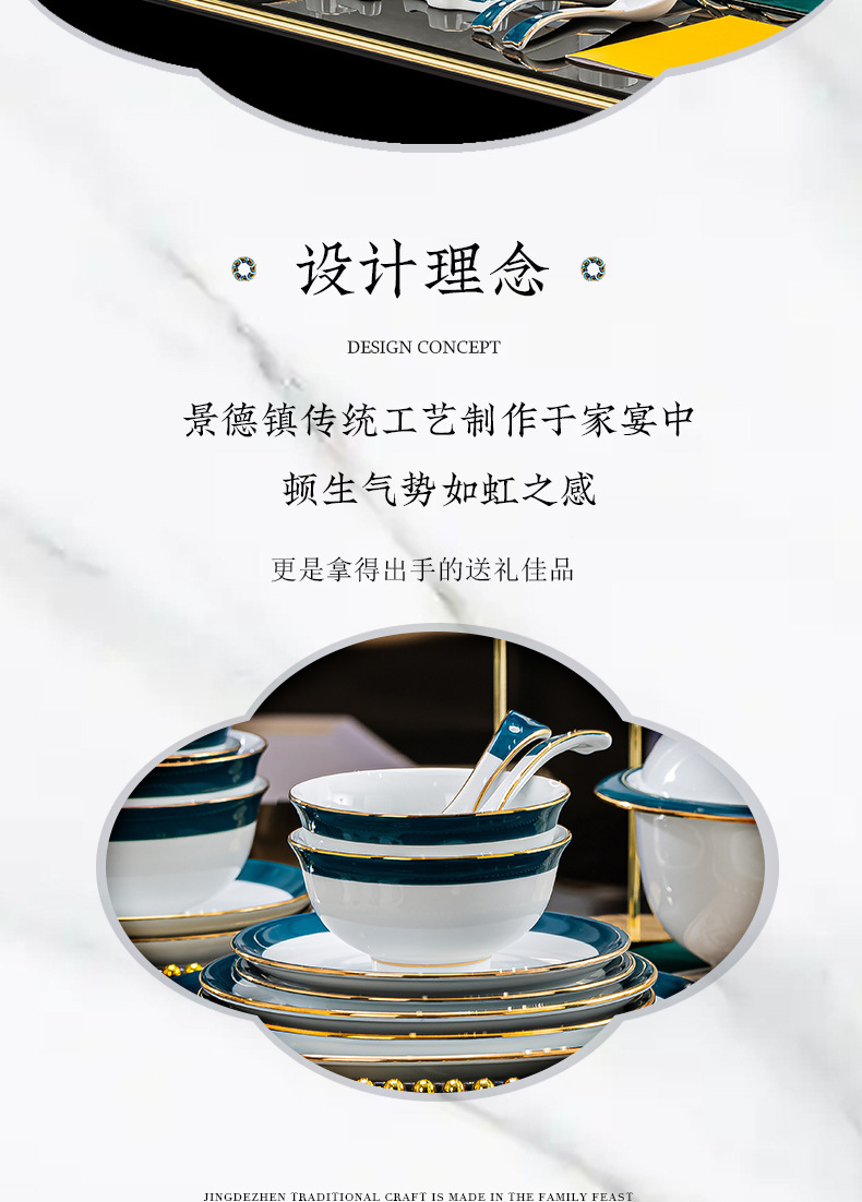 Jingdezhen 흰색 도자기 식기 세트 가구 도매 노르딕 스타일 세라믹 요리 및 요리 조합 전체 세트 회사 선물스토어 가기