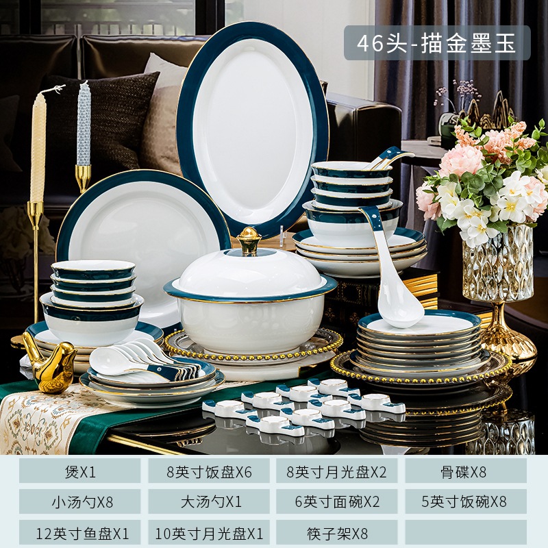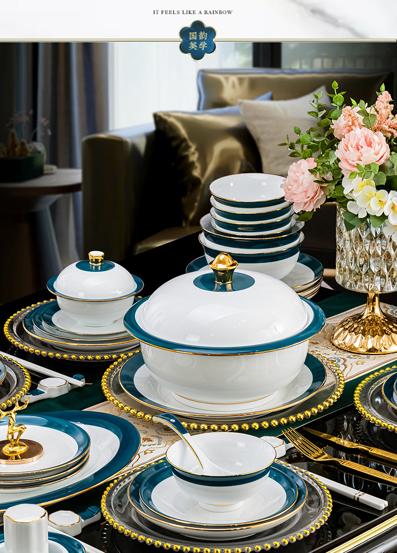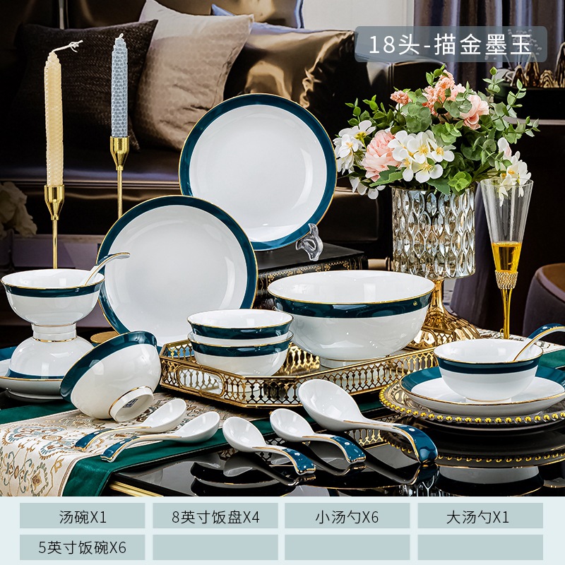 Jingdezhen 흰색 도자기 식기 세트 가구 도매 노르딕 스타일 세라믹 요리 및 요리 조합 전체 세트 회사 선물