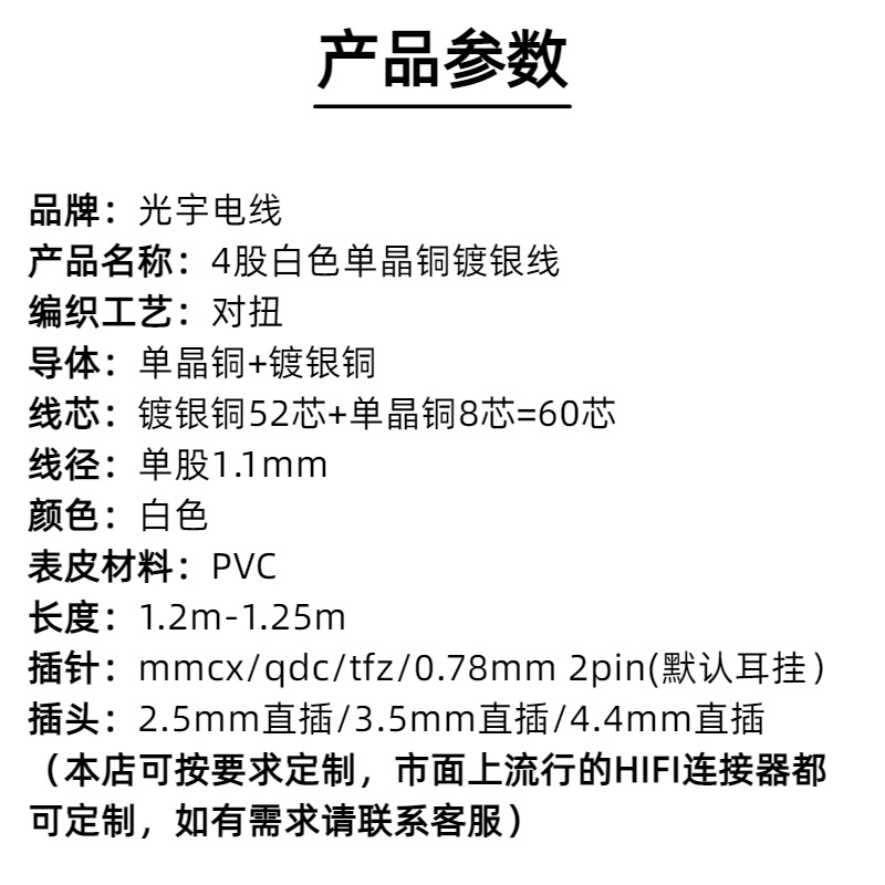 GY Audio4 스트랜드 화이트 단결정 구리 실버 도금 MMCX 0.78MM/2PIN QDC 오디오 헤드셋 업그레이드 라인