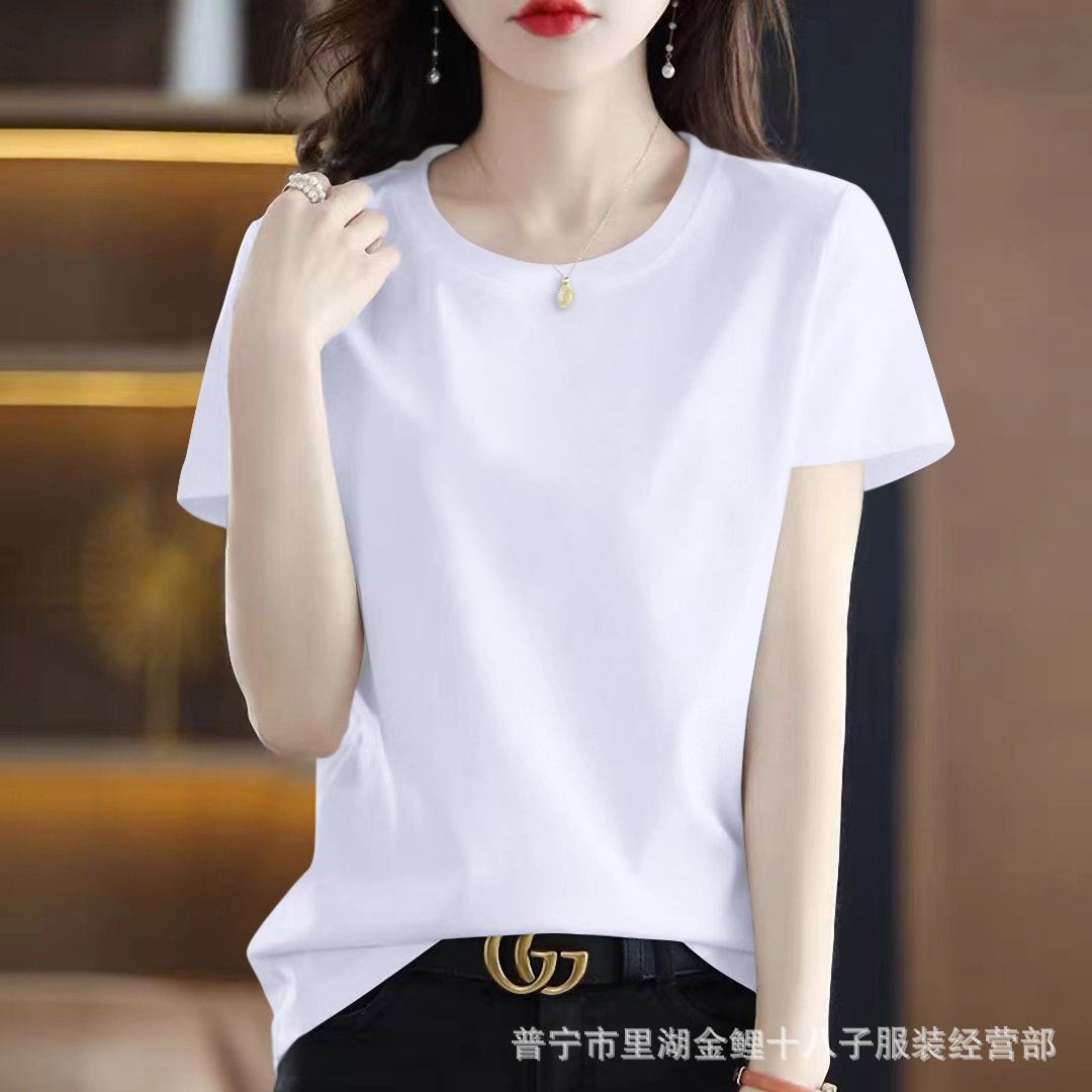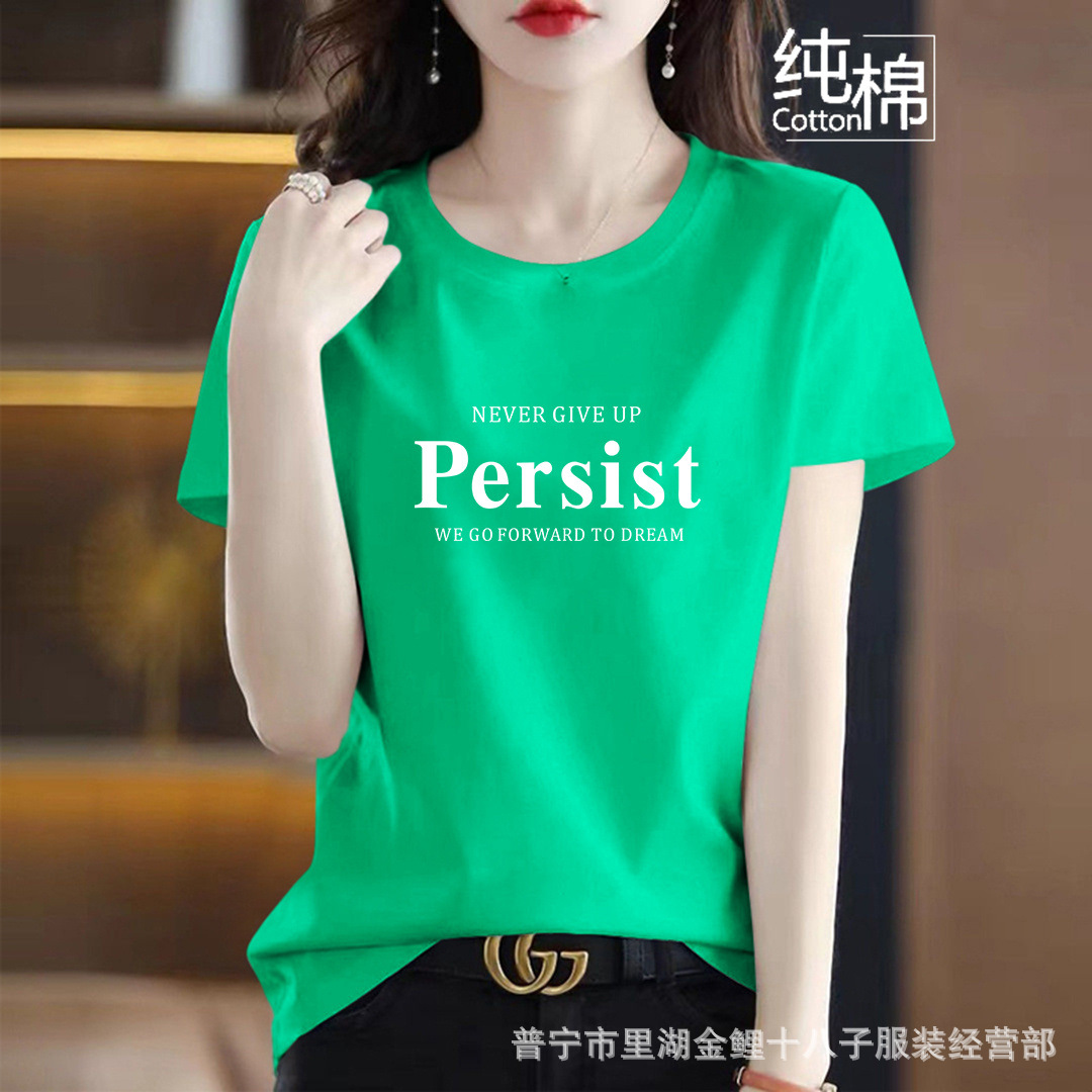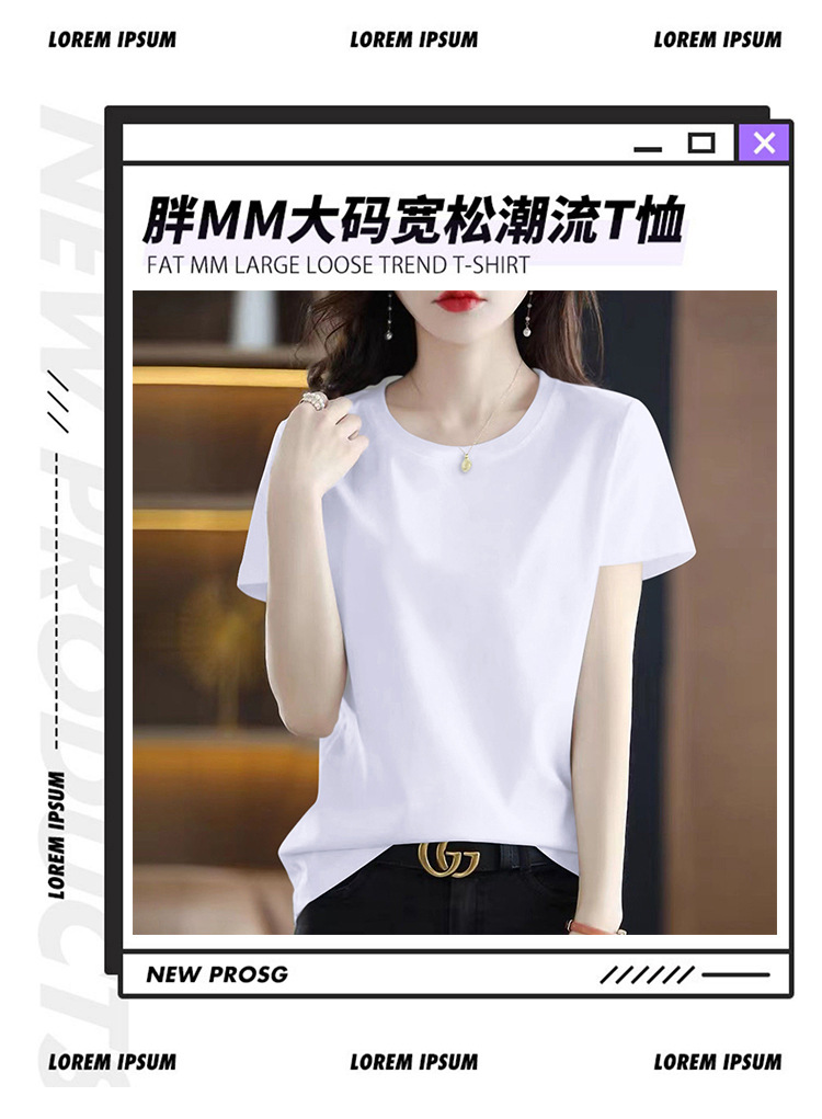 퓨어 코튼 반팔 티셔츠 여성용 여름 얇은 한국식 내면베이스 티셔츠 플러스 사이즈 아우터웨어 풀오버 프린트 탑스토어 가기