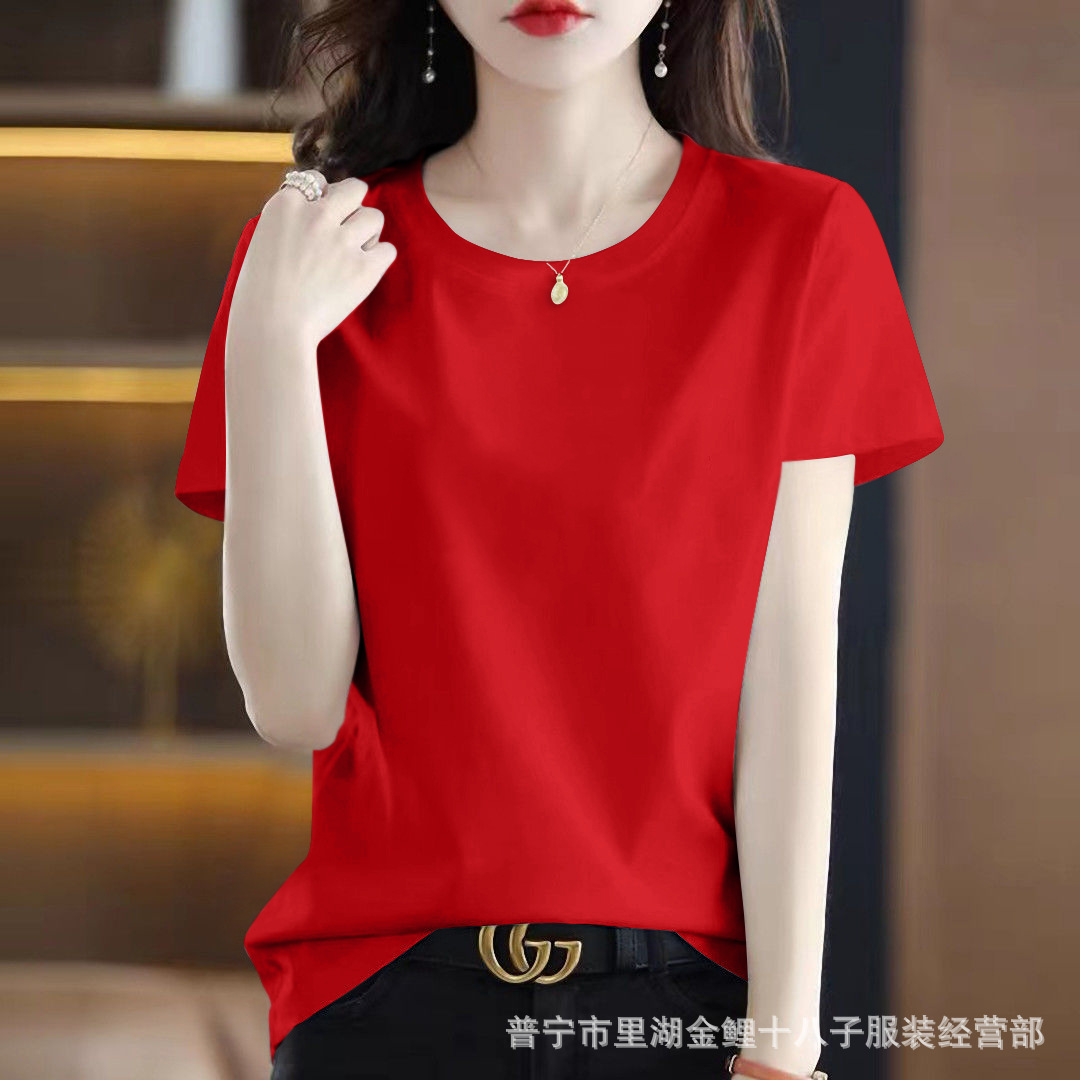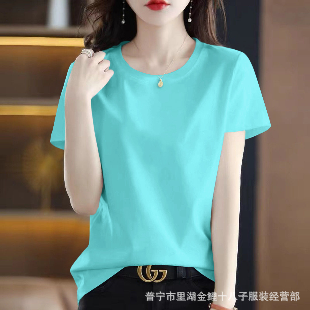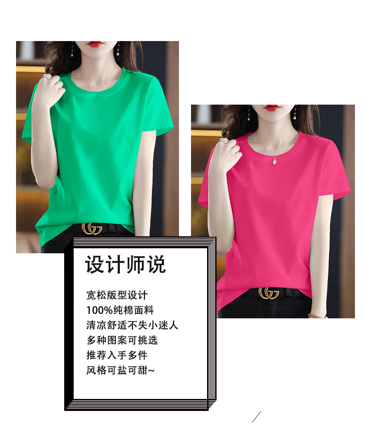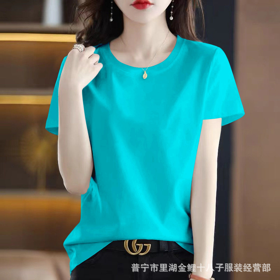 퓨어 코튼 반팔 티셔츠 여성용 여름 얇은 한국식 내면베이스 티셔츠 플러스 사이즈 아우터웨어 풀오버 프린트 탑스토어 가기