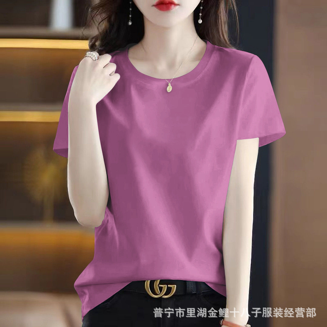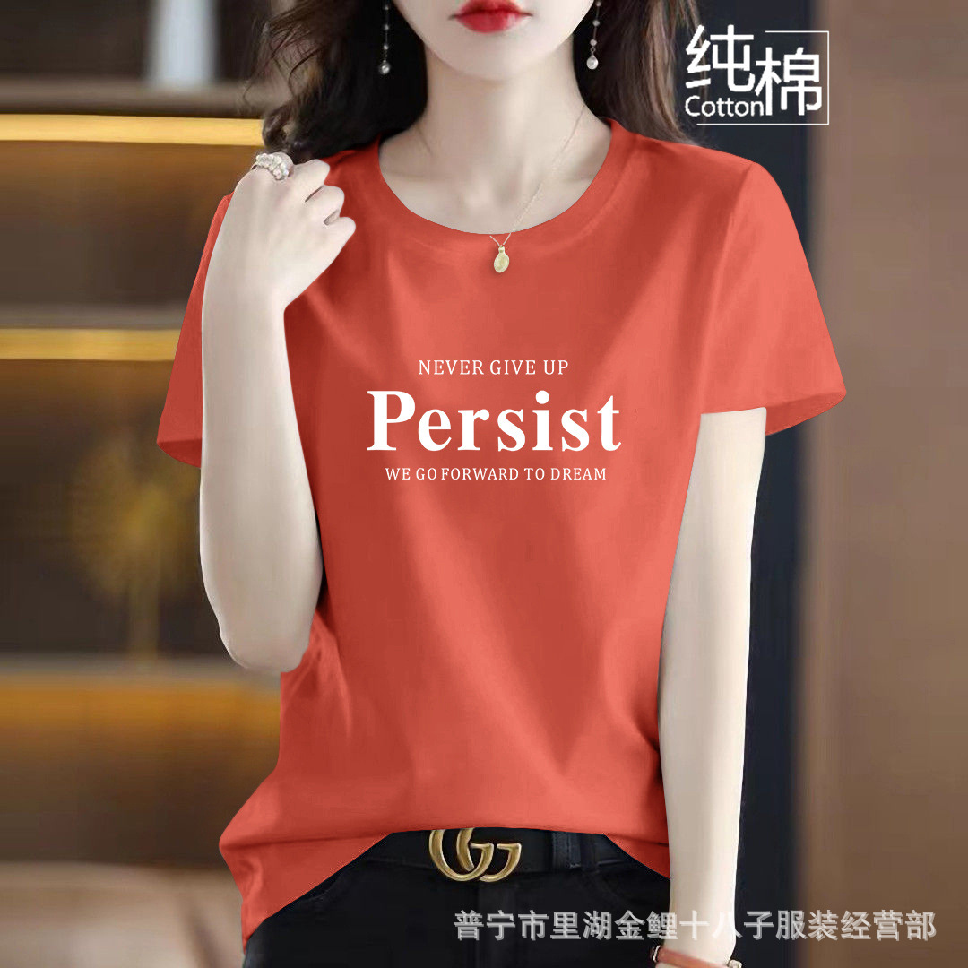 퓨어 코튼 반팔 티셔츠 여성용 여름 얇은 한국식 내면베이스 티셔츠 플러스 사이즈 아우터웨어 풀오버 프린트 탑