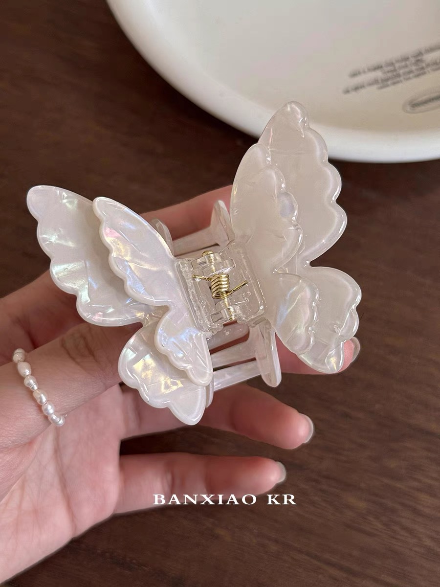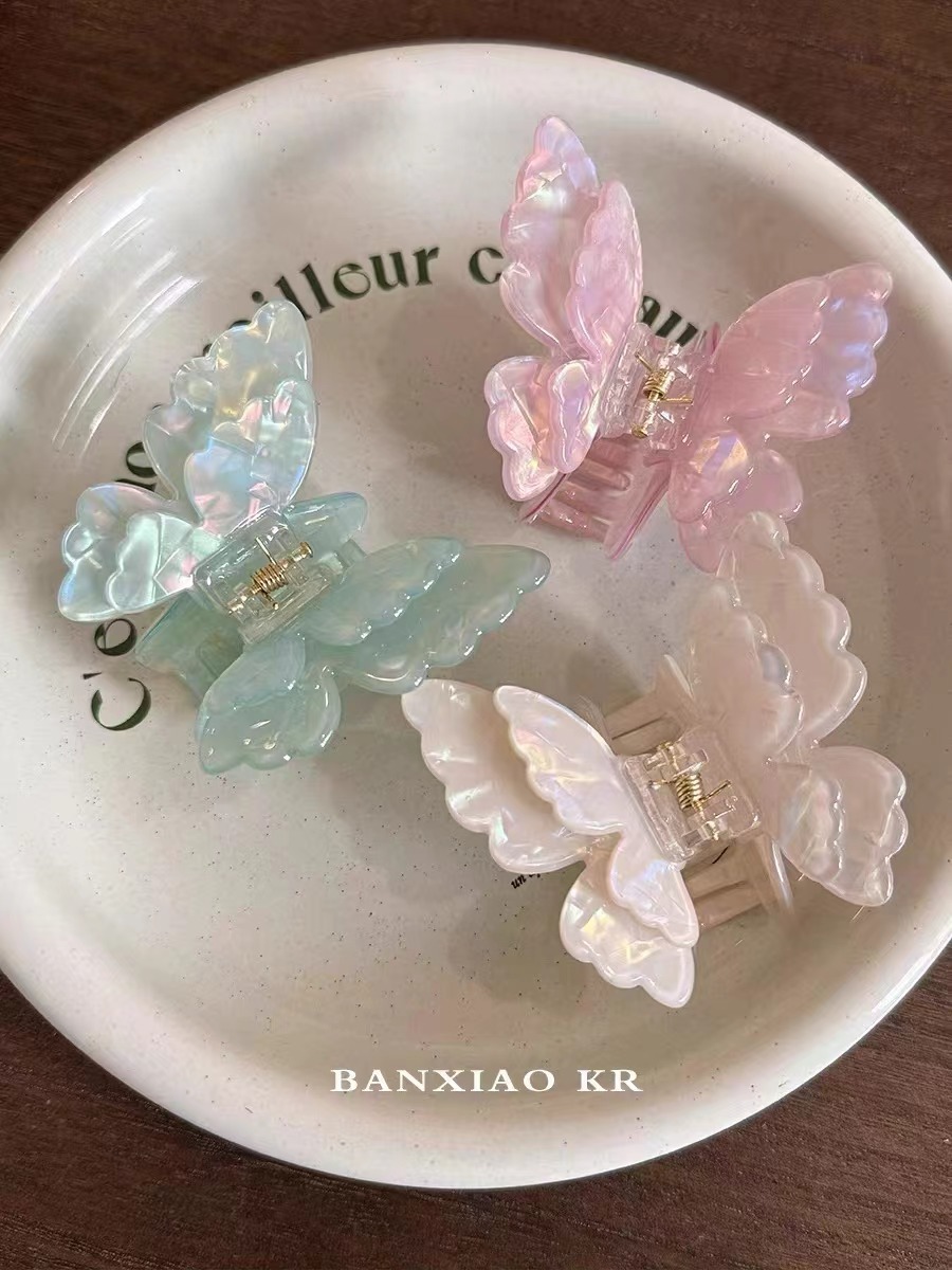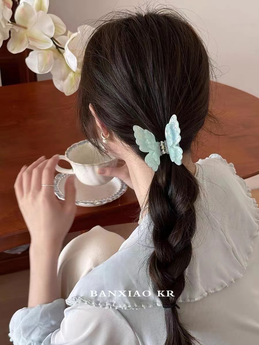 화려한 나비 클립 여성의 2024 새로운 하이 엔드 센스 하프 타이 헤어 백 헤드 클립 우아한 상어 클립 헤어 액세서리스토어 가기