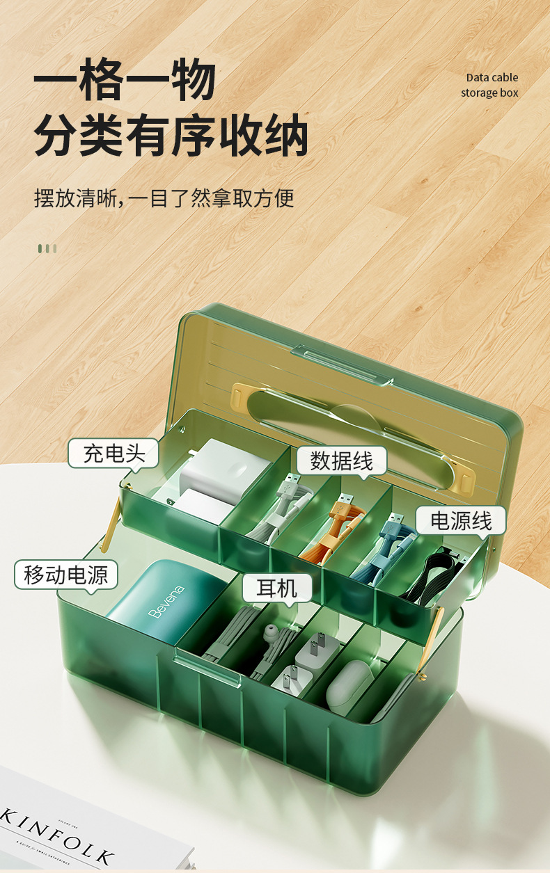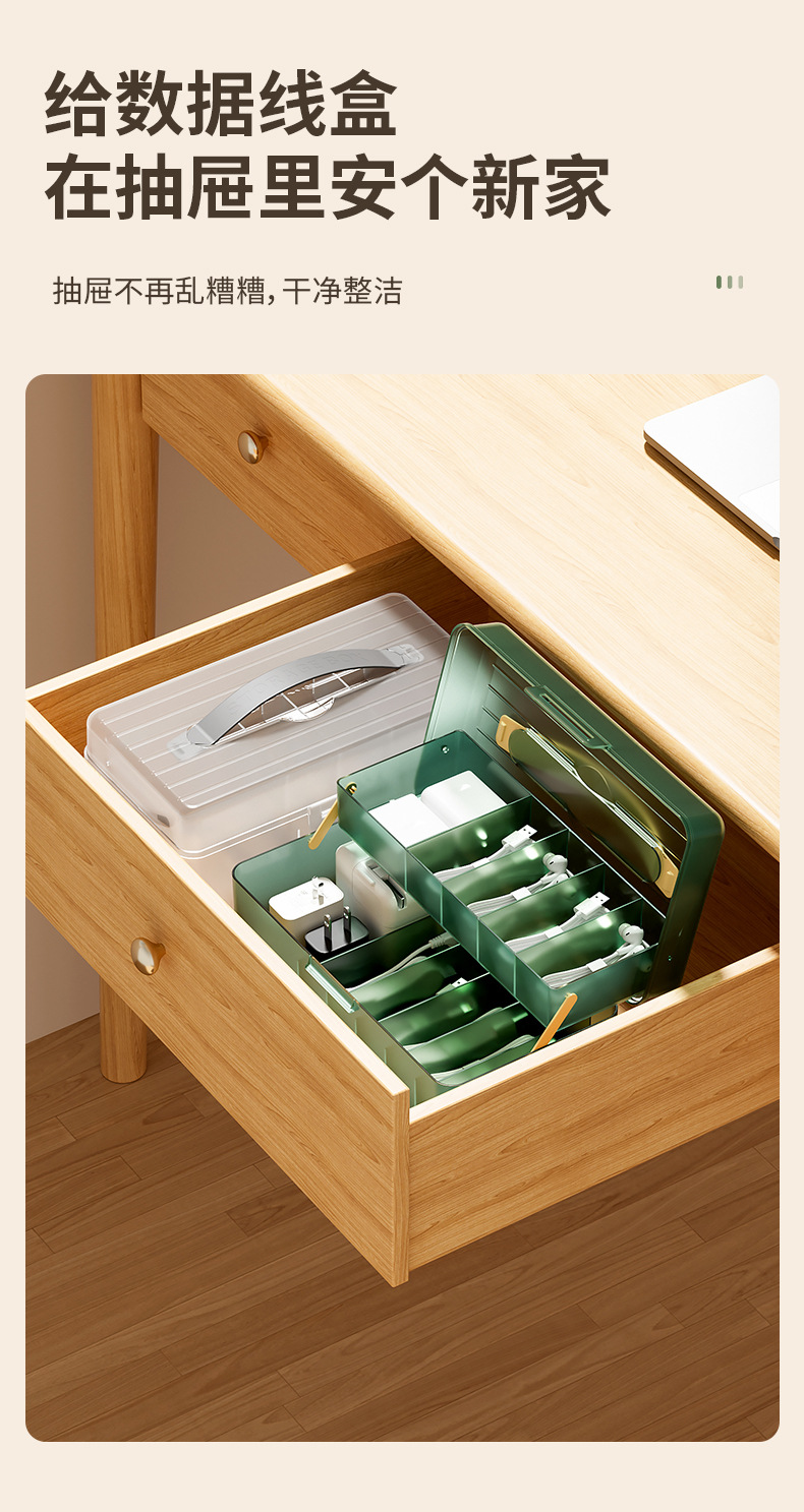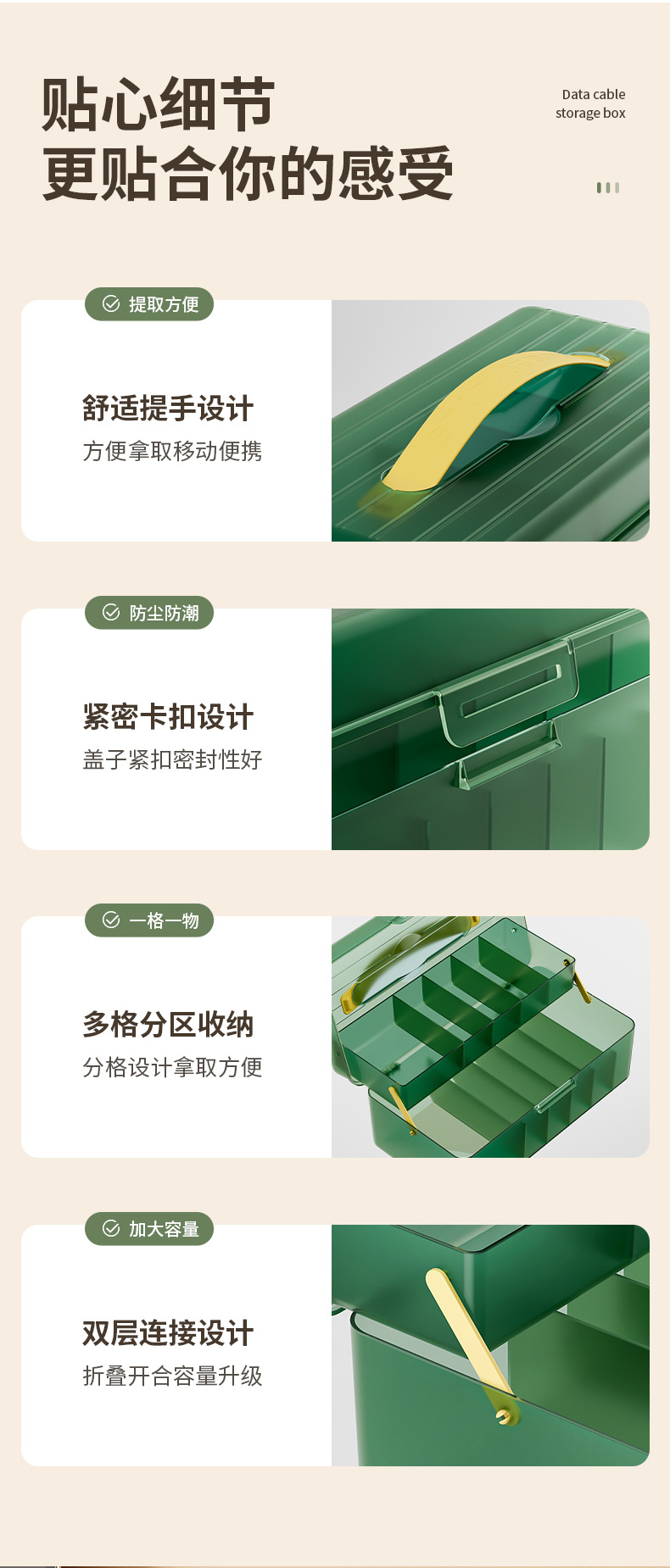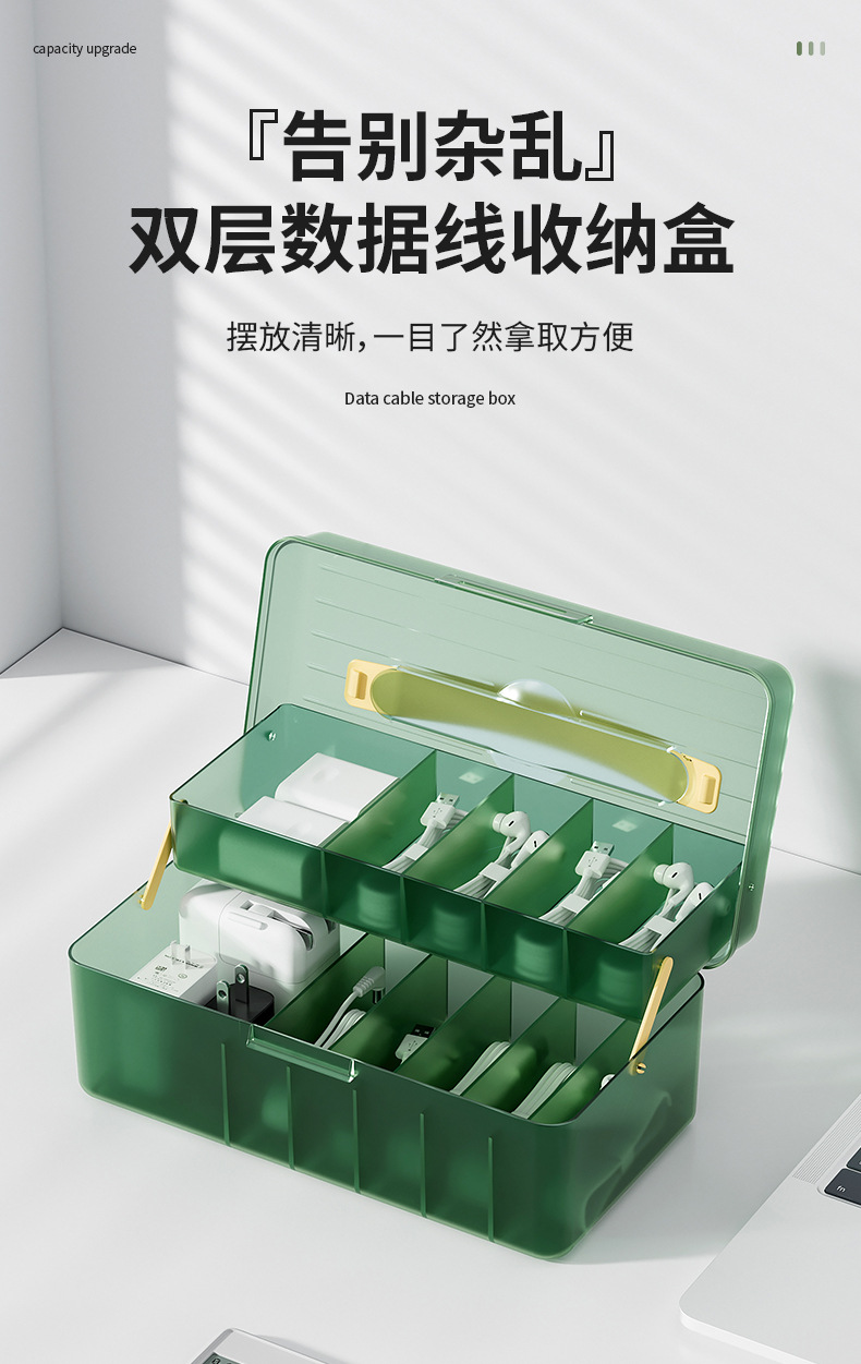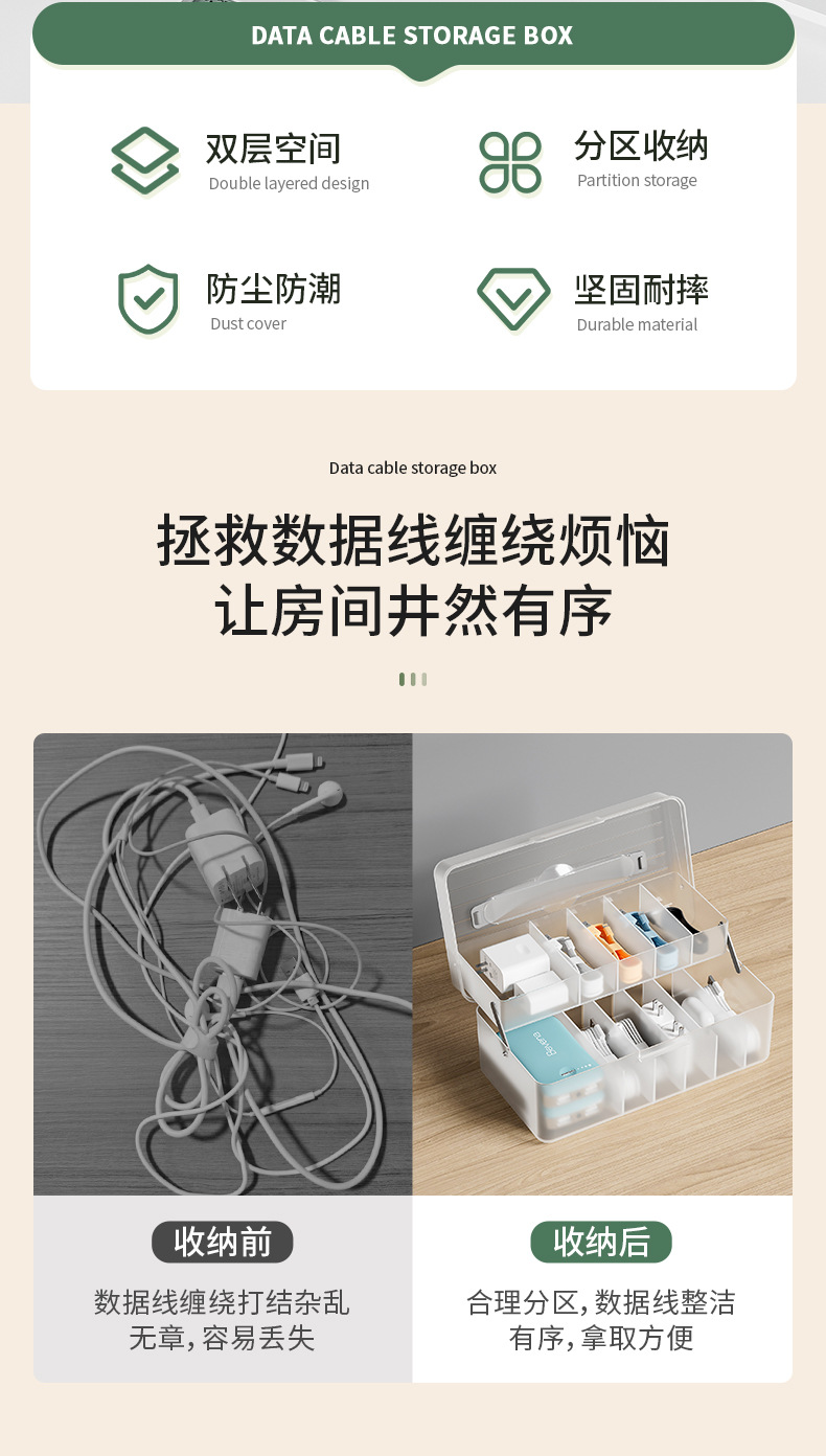 플립형 데이터 케이블 수납 이중 구획 대용량 내장형 케이블 박스 휴대폰 충전기 전선 수납함