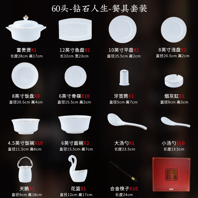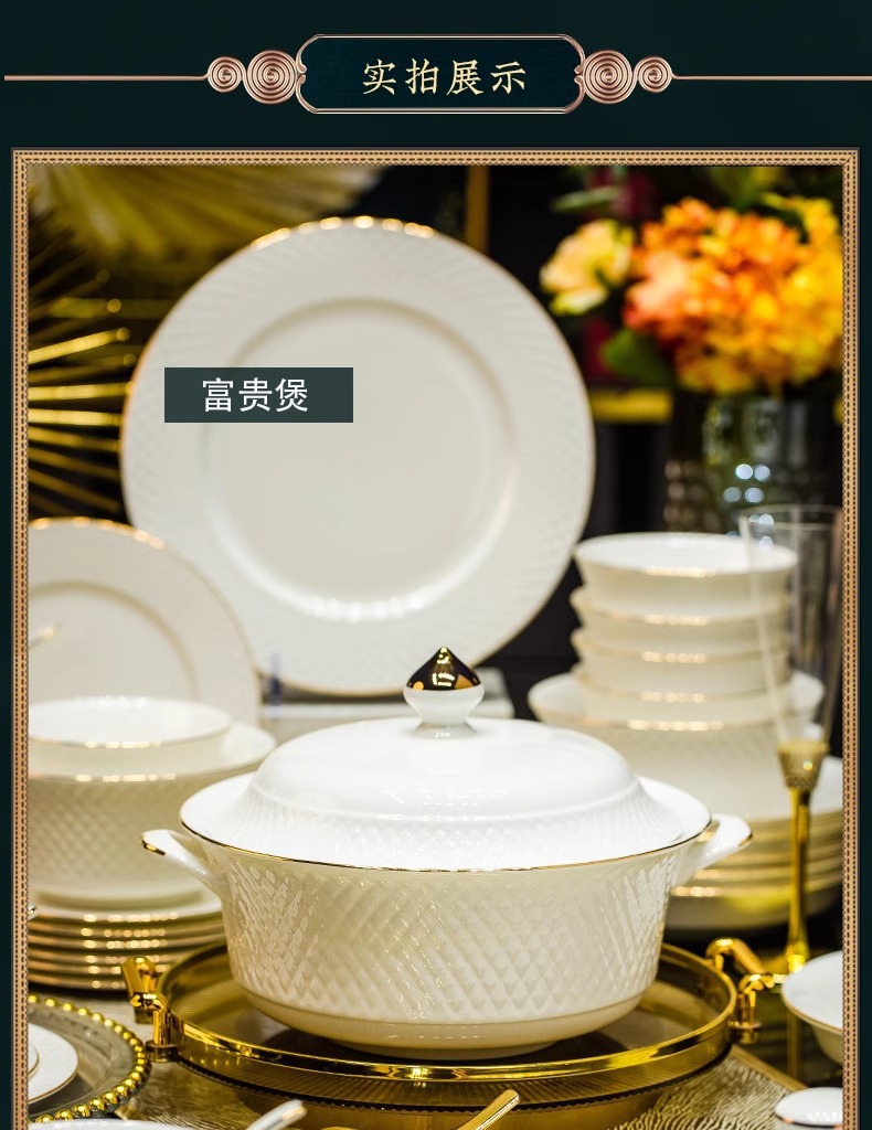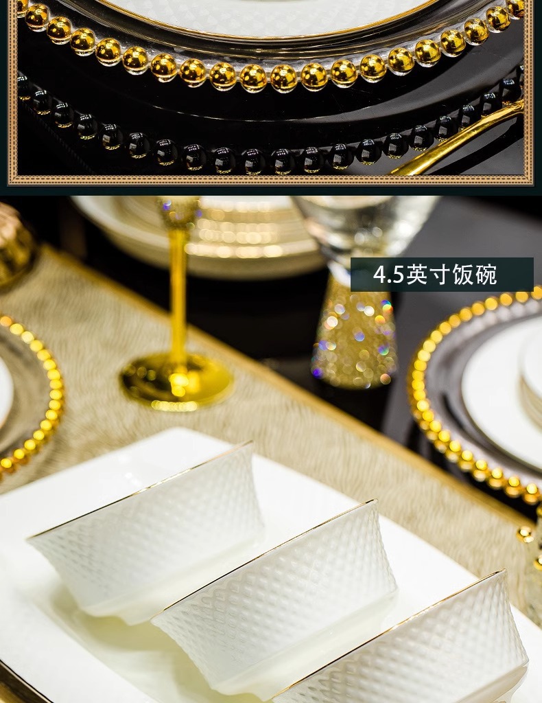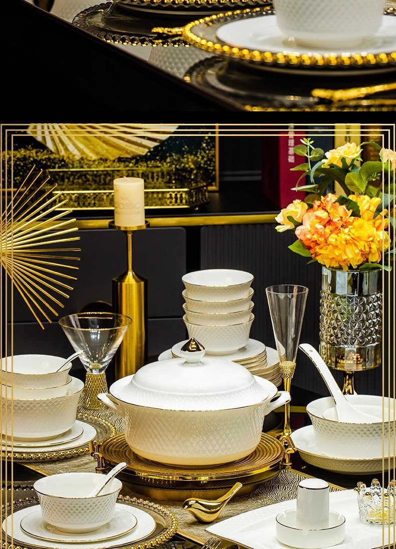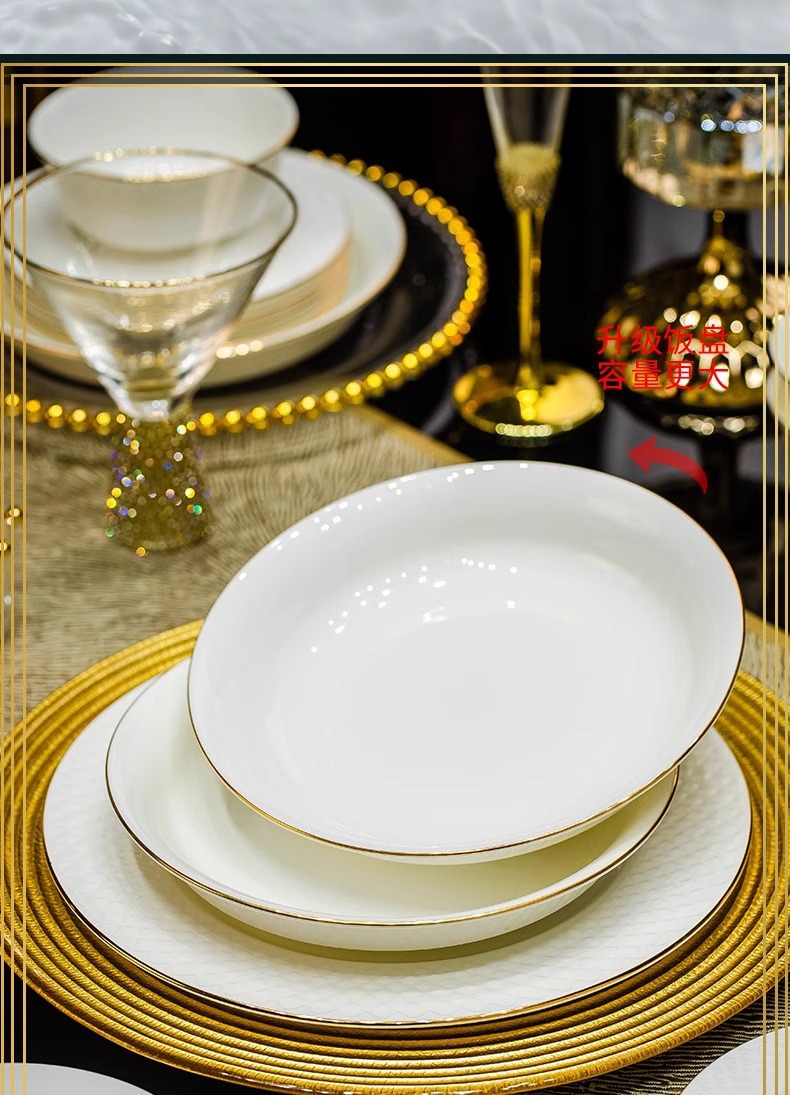 2023 새로운 도착 요리 세트 가정용 중국 스타일 가벼운 럭셔리 Jingdezhen 뼈 중국 식기 집들이 그릇 젓가락 접시 도자기