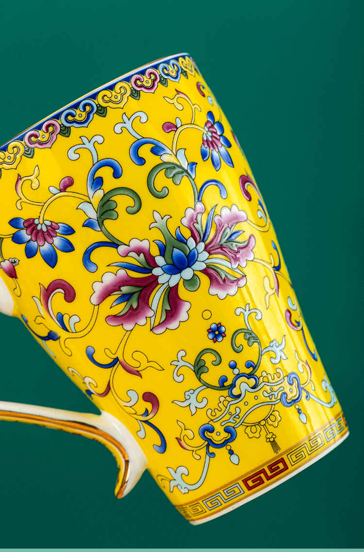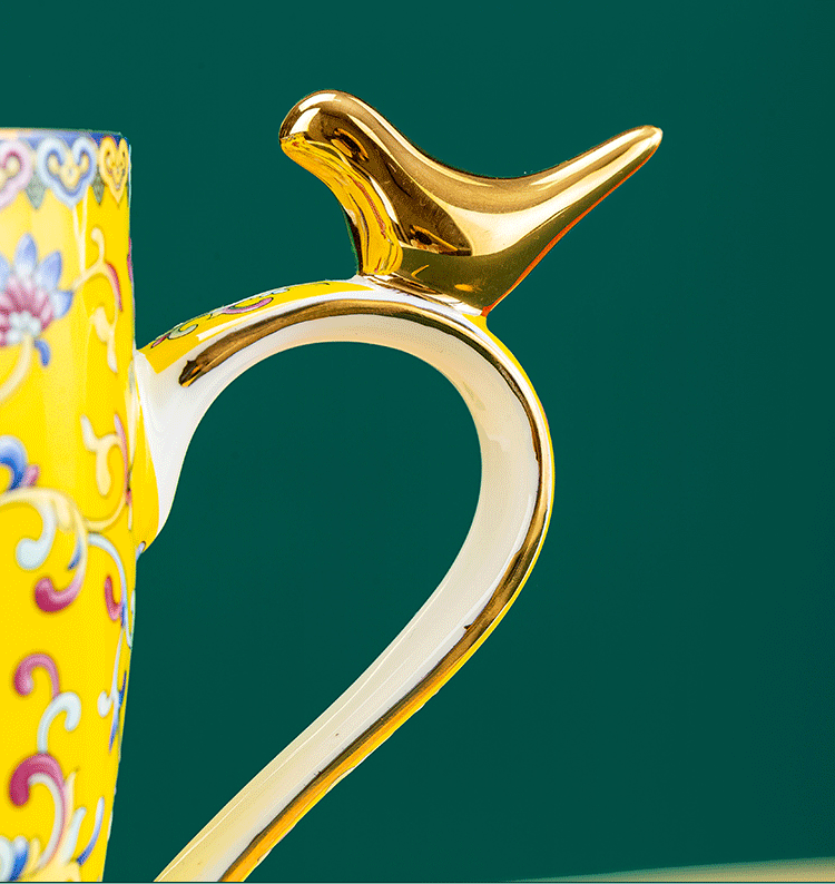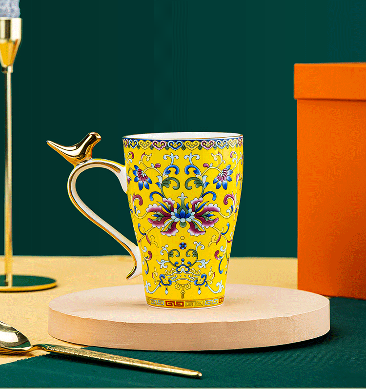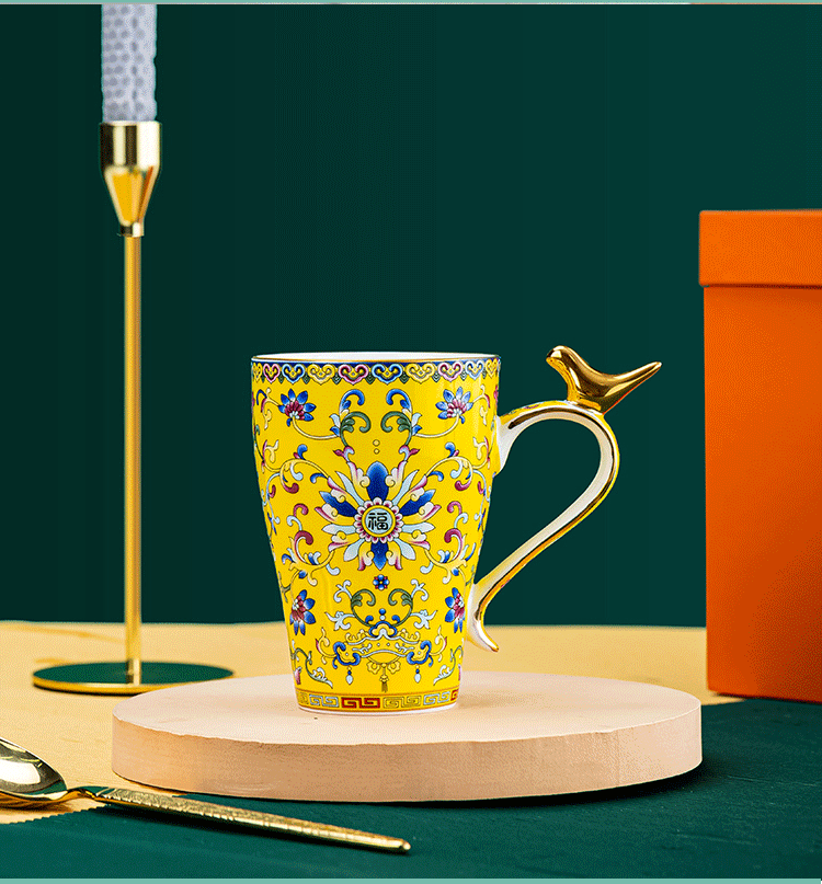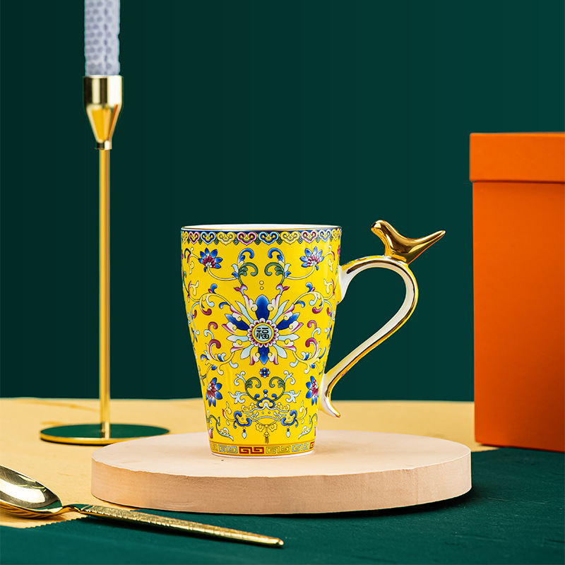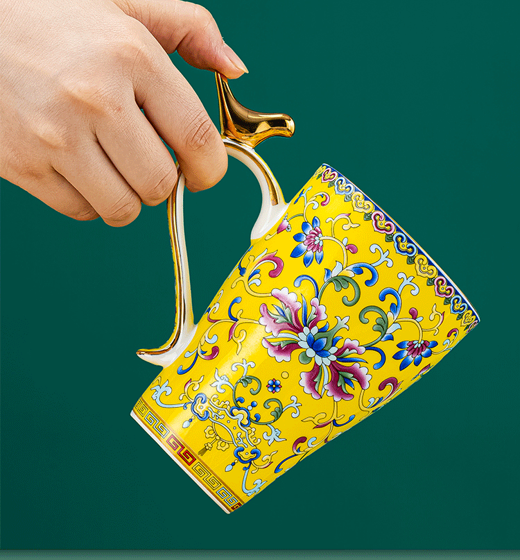 Jingdezhen 중국 뼈 중국 에나멜 컬러 수제 골드 머그 궁전 스타일 사무실 창조적 인 간단한 새 컵