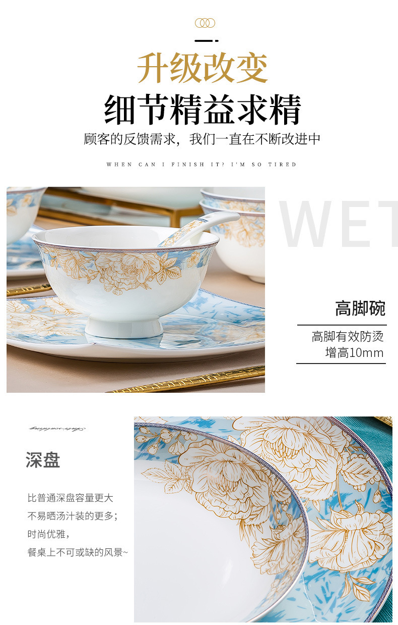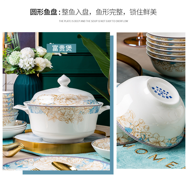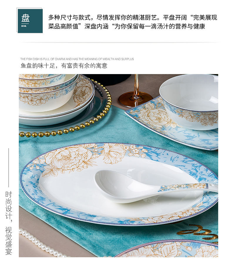 요리 및 요리 세트 가정용 빛 럭셔리 Jingdezhen 그릇 세라믹 뼈 중국 요리 및 접시 젓가락 세트 식기 2023 새로운 스타일스토어 가기