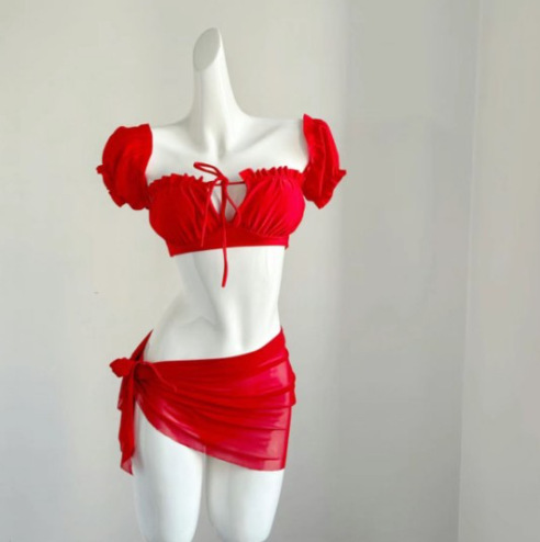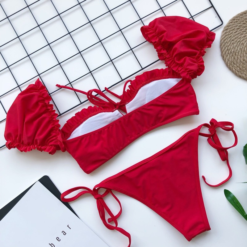 Mosricci 인터넷 Celebrant 같은 스타일 섹시한 유럽과 미국 스타일 레트로 레드 비키니 분할 수영복 여성 가슴 패드 순수한 욕망