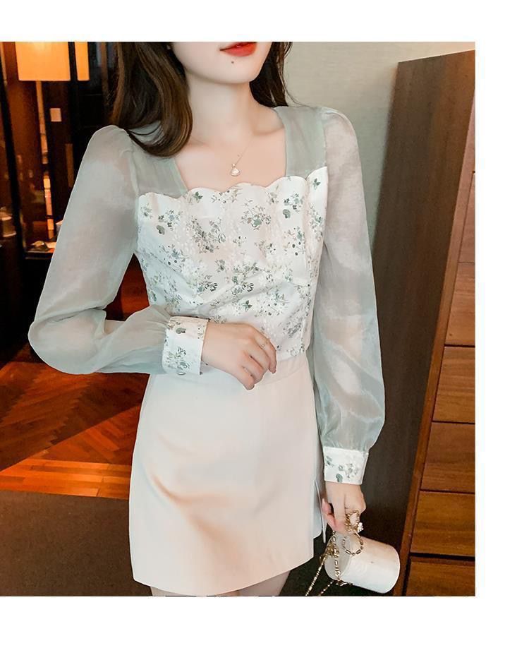 레이스 바느질 쉬폰 셔츠 여성의 2024 봄 새로운 신선한 달콤한 광장 칼라 세련된 꽃 탑 작은 셔츠