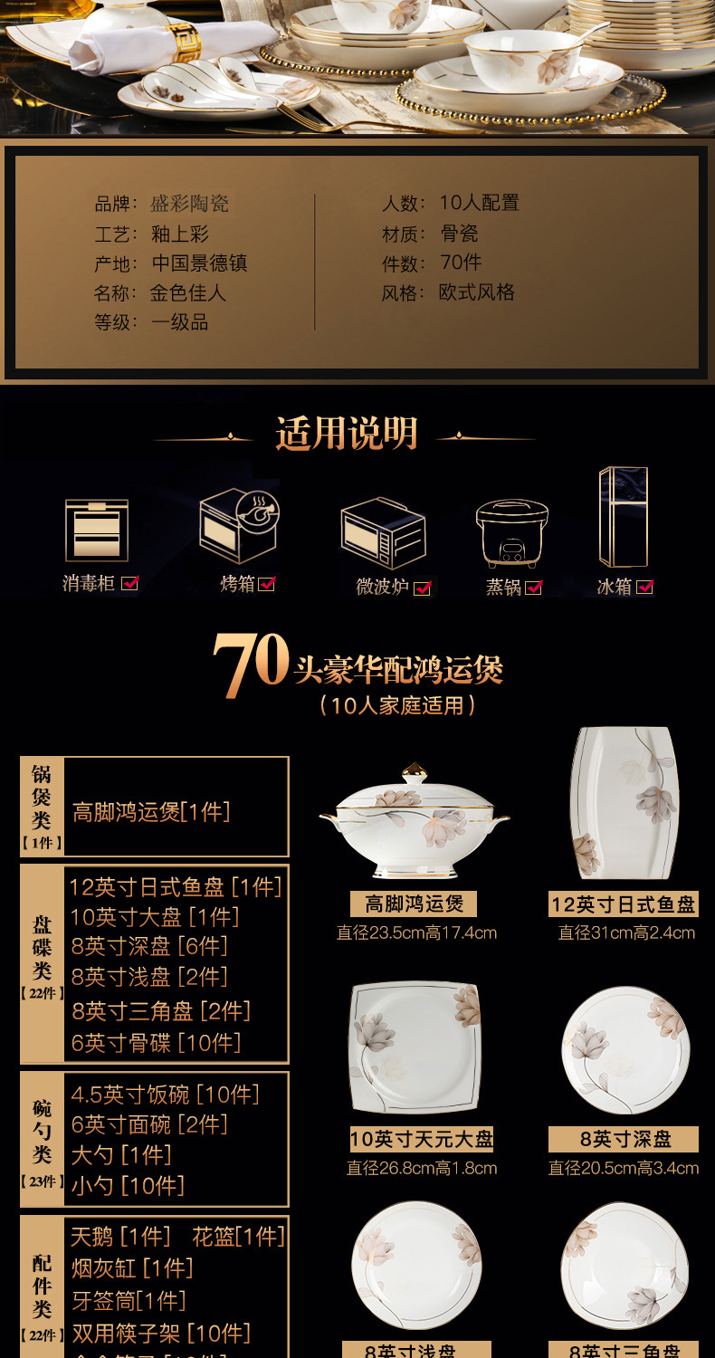Jingdezhen 뼈 중국 식기 세트 가정용 유럽 요리 및 요리 세트 중국 세라믹 요리 및 요리 수제 금 상감 식기스토어 가기