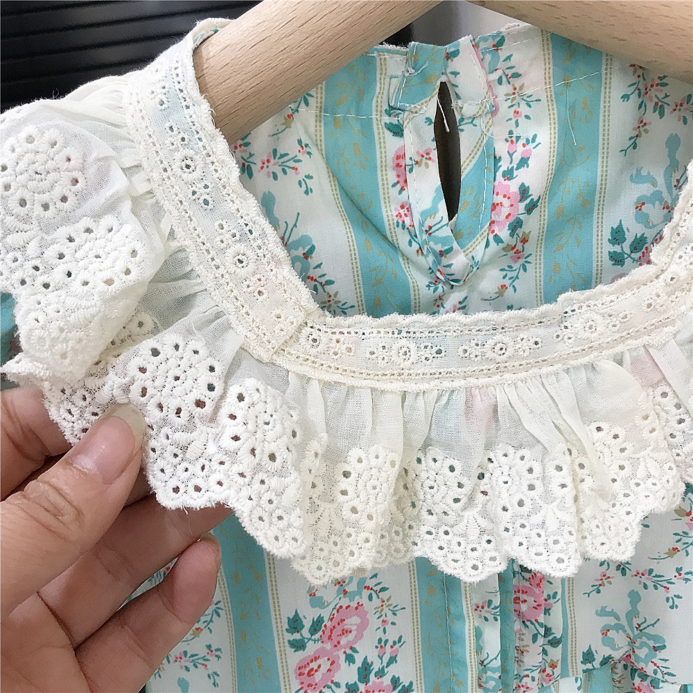 여성 아동복 여름 꽃 원피스 어린이 서양 스타일 목가적 작은 광장 칼라 긴 치마 여름 원피스 짧은 소매 공주 원피스