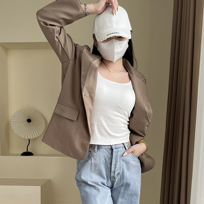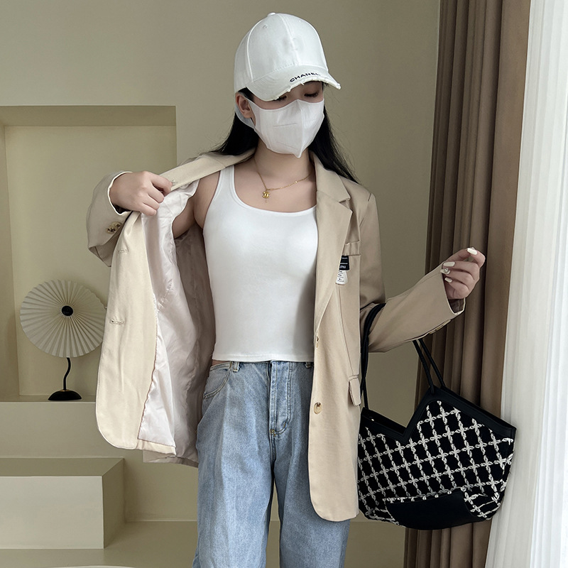 스파이스 걸스 카미 솔 여성용 여름 아우터 화이트 아름다운 백 랩 가슴 내복 가슴 패드 슬림 핏 슬림 핏베이스 탑스토어 가기