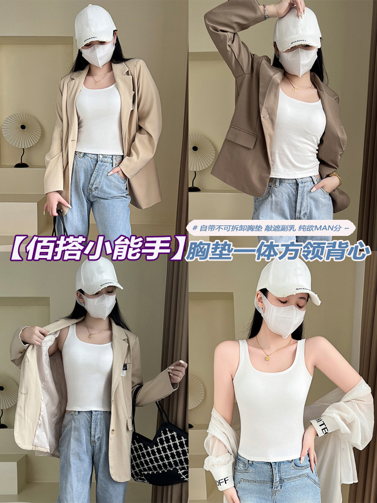 스파이스 걸스 카미 솔 여성용 여름 아우터 화이트 아름다운 백 랩 가슴 내복 가슴 패드 슬림 핏 슬림 핏베이스 탑