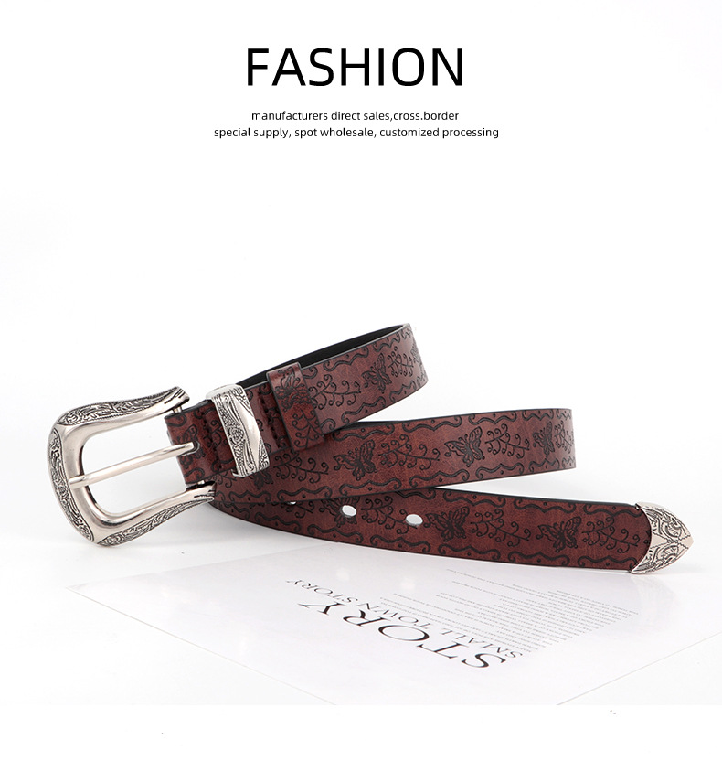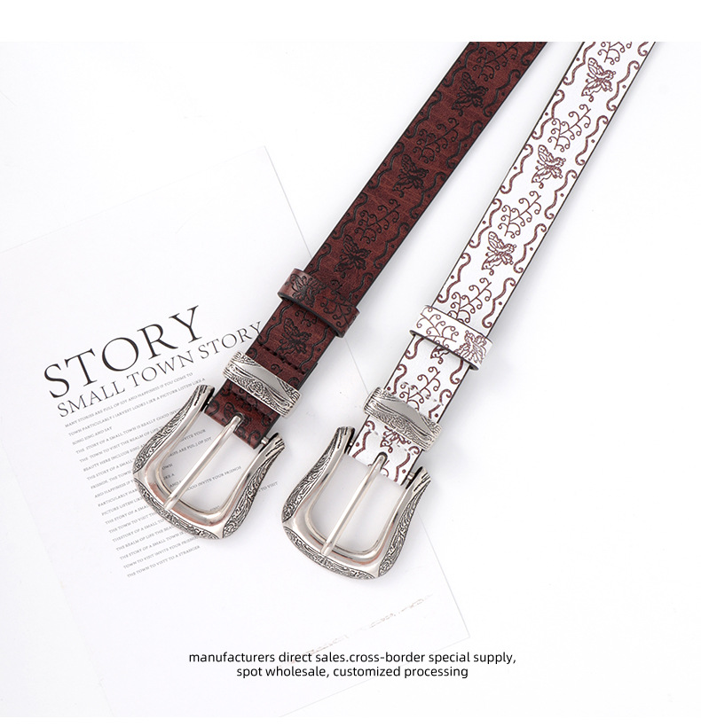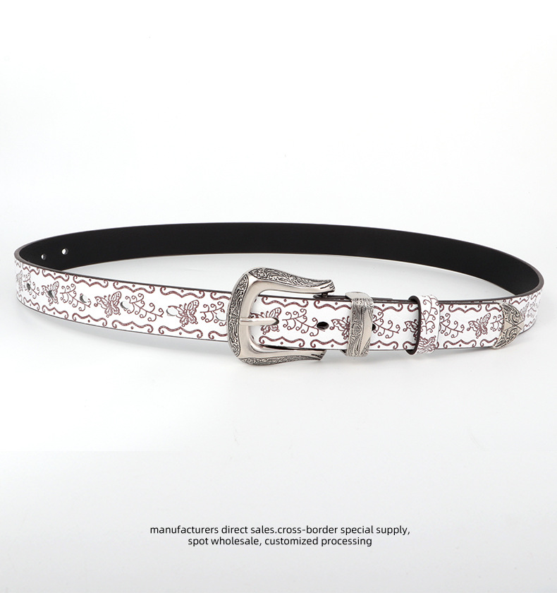 인쇄 된 나비 벨트 여성 아메리칸 스타일 빈티지 구식 올 매치 하이 엔드 청바지 액세서리 트렌디 한 학생 허리 벨트