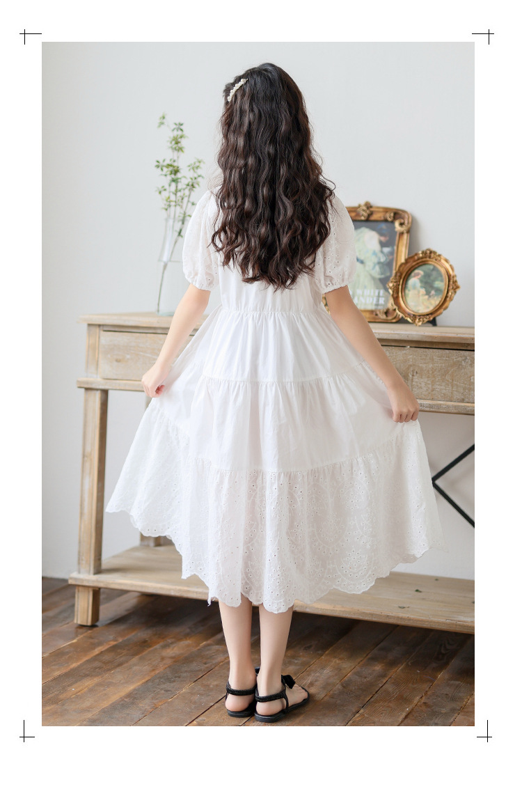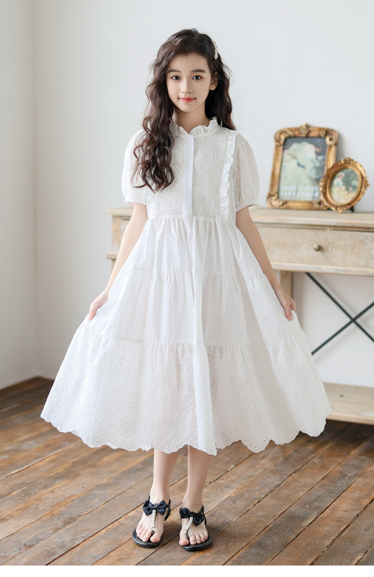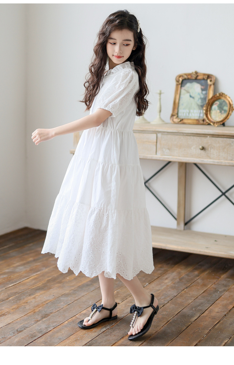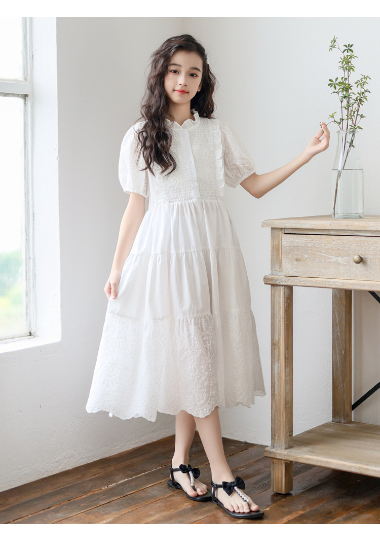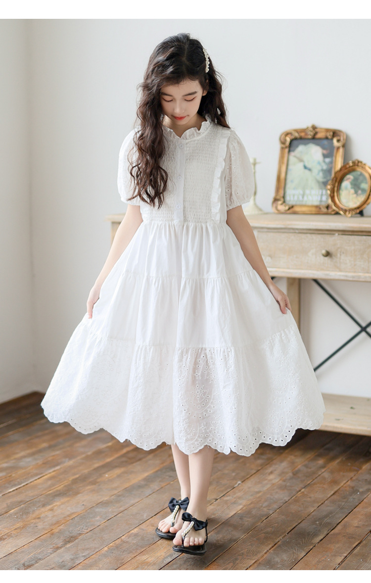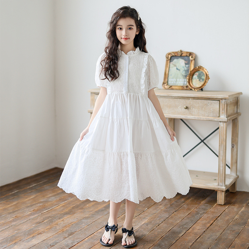 소녀 원피스 여름 하이 엔드 이어 칼라 스커트 2024 새로운 어린이 서양식 공주 스커트
