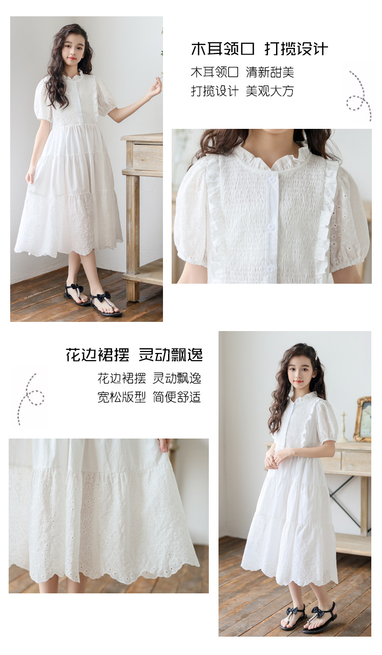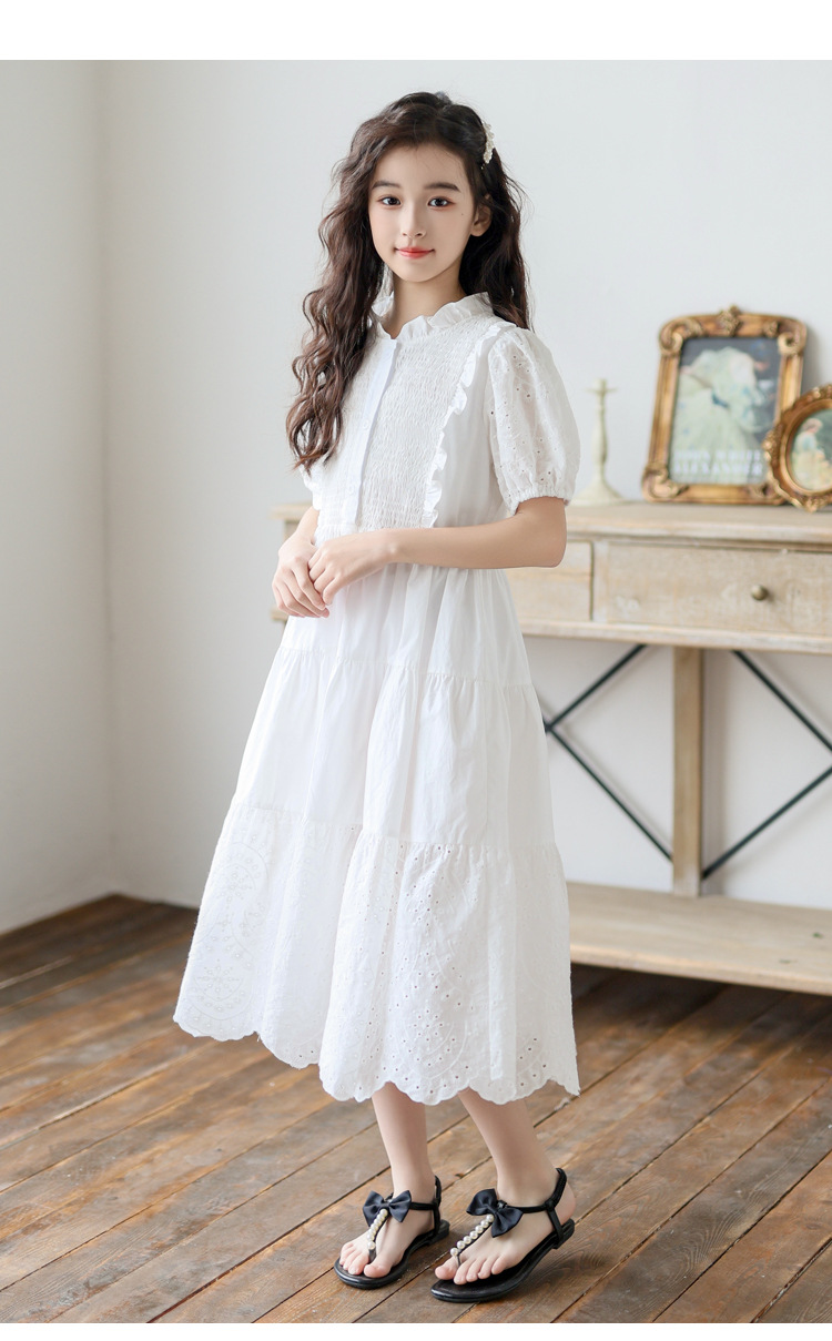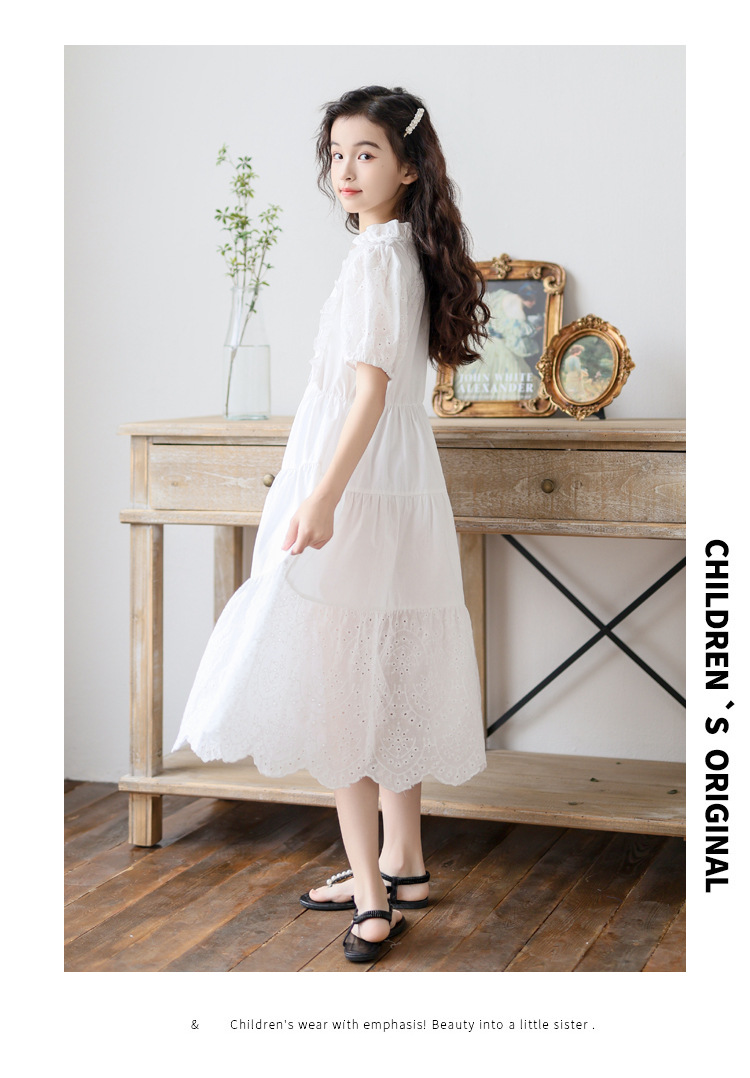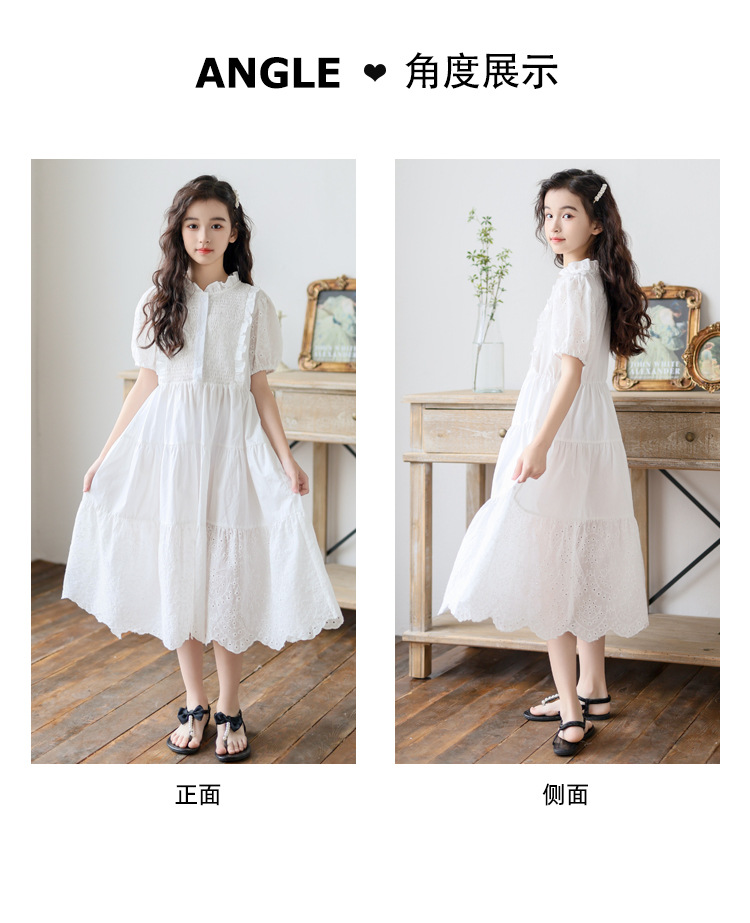 소녀 원피스 여름 하이 엔드 이어 칼라 스커트 2024 새로운 어린이 서양식 공주 스커트스토어 가기