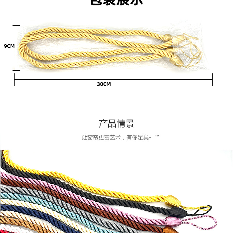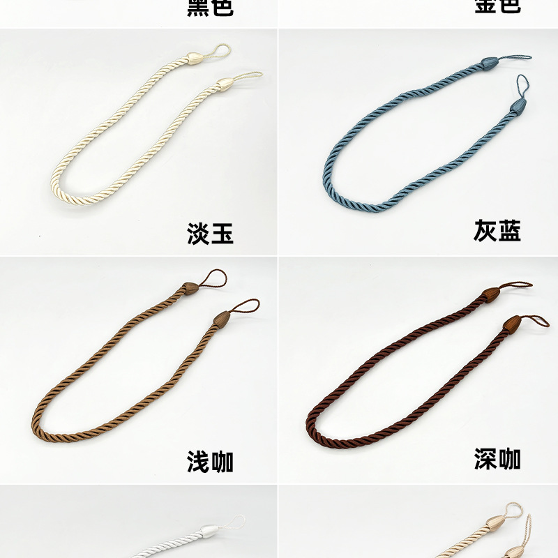 새로운 폴리 에스터 짠 커튼 스트랩 재고 도매 현대 간단한 트위스트 커튼 스트랩 로프 도매스토어 가기