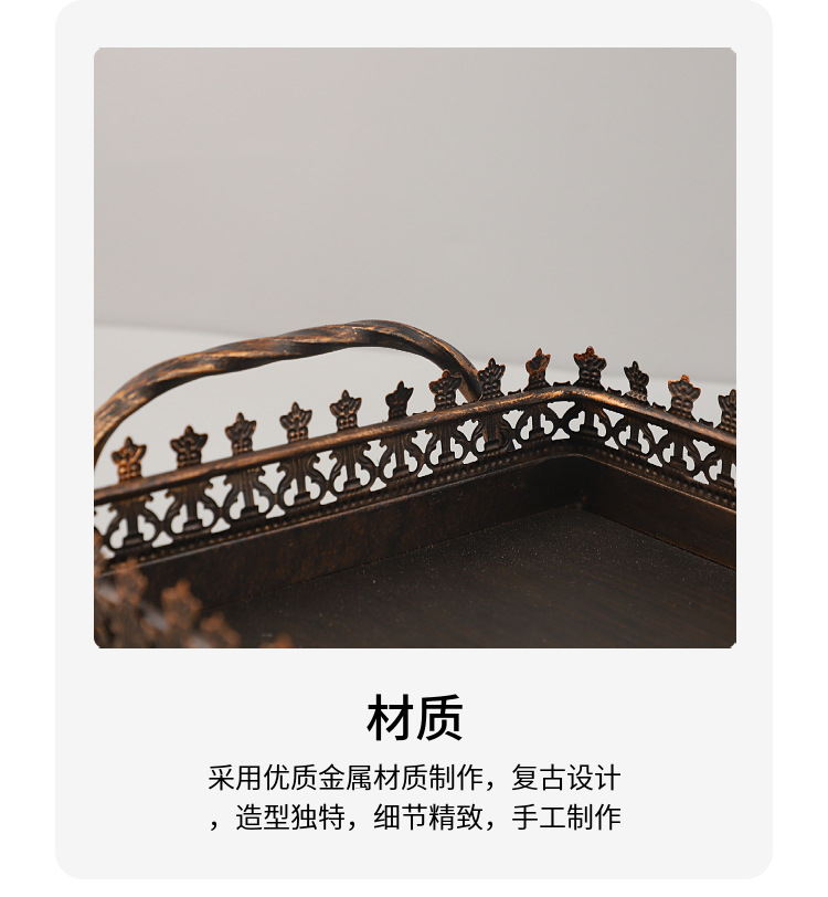 북유럽 빛 럭셔리 금속 빈티지 스퀘어 장식 트레이 장식품 거실 침실 복도 호텔 소프트 홈 액세서리