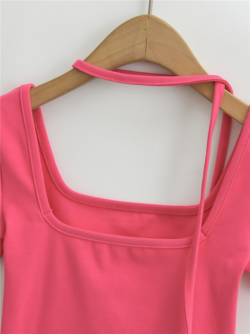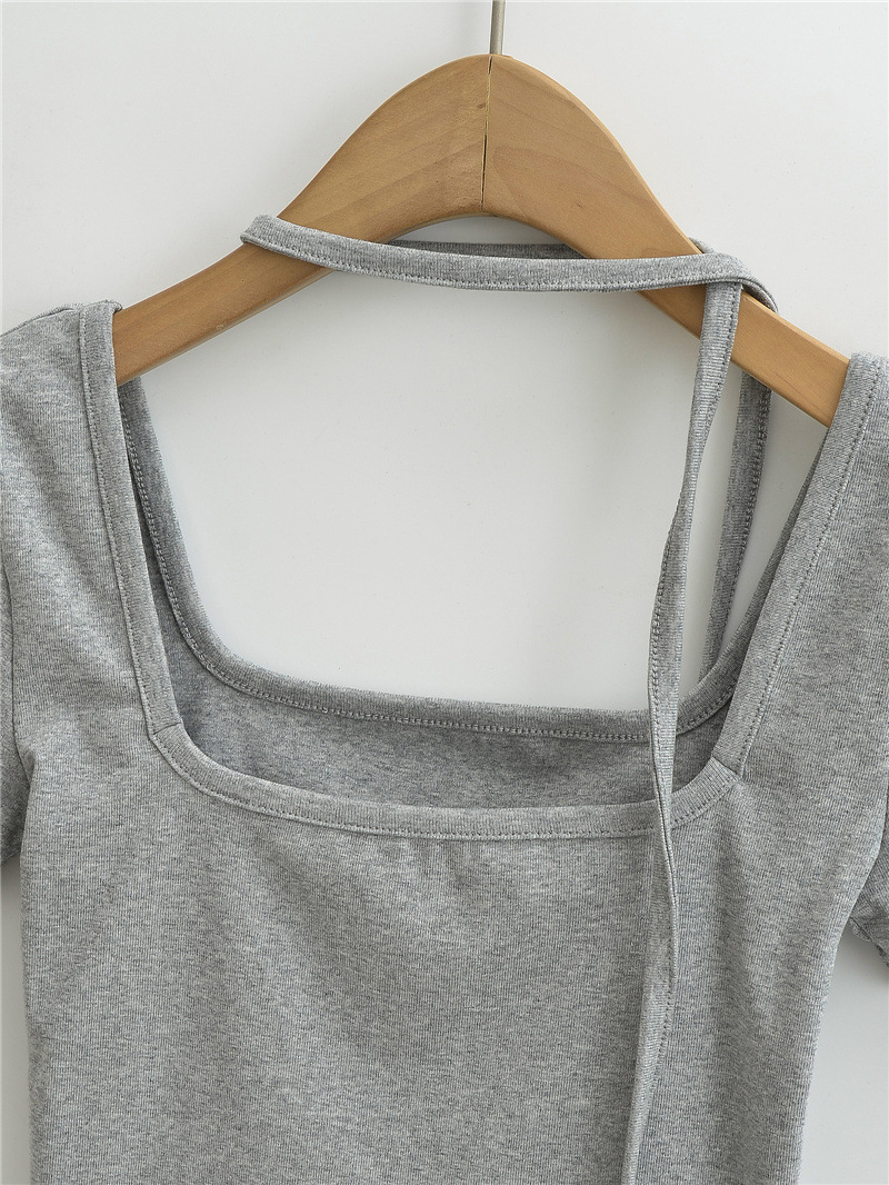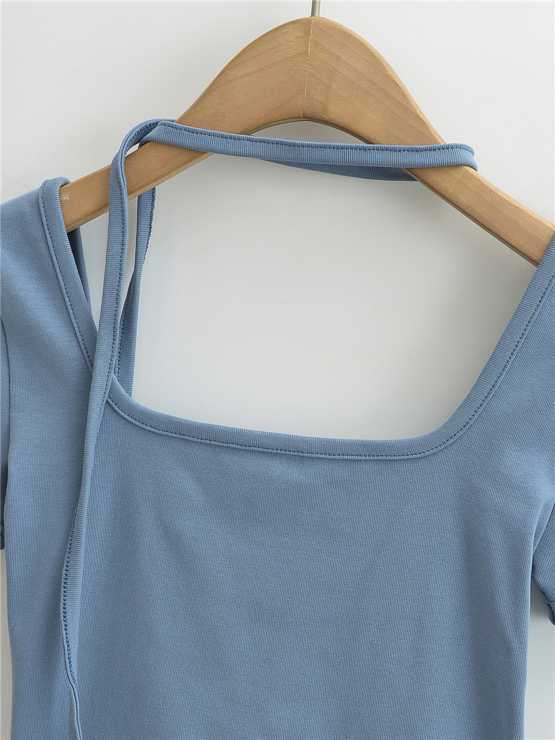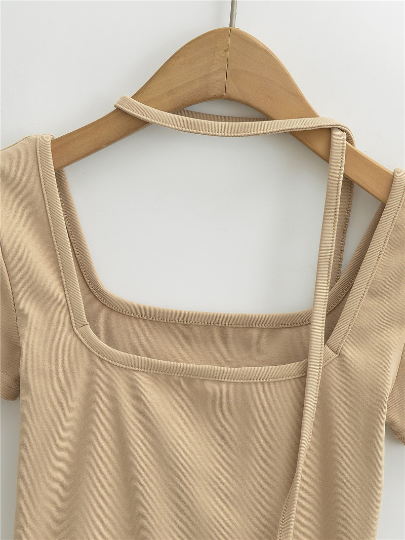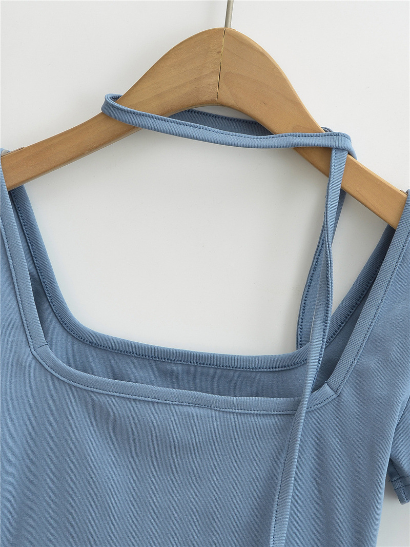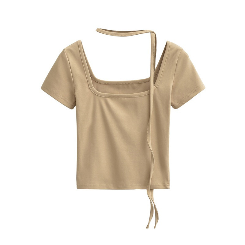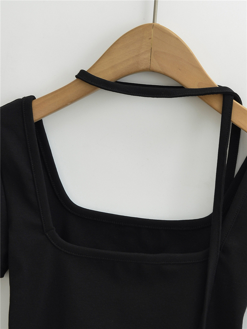 퓨어 스파이스 걸 스퀘어 칼라 반팔 티셔츠 스트랩 여름 새로운 스타일 슬림핏 슬리밍 짧은 배꼽 노출 베이스 탑스토어 가기