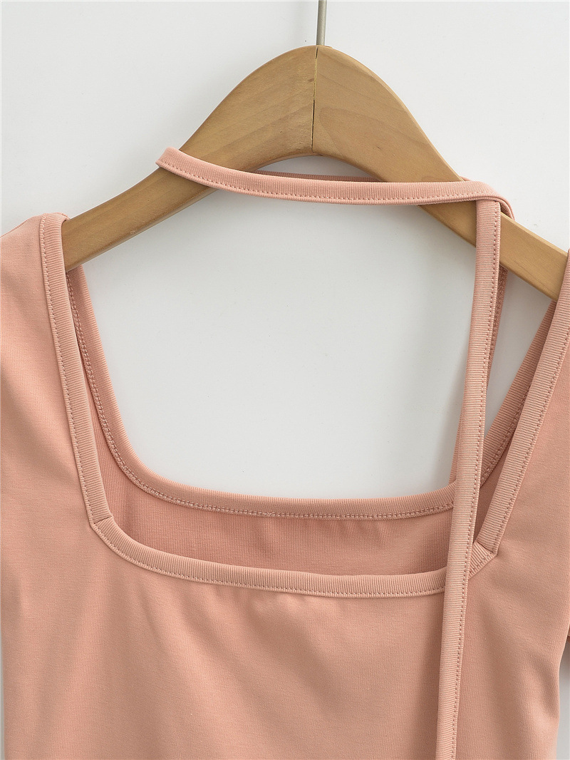 퓨어 스파이스 걸 스퀘어 칼라 반팔 티셔츠 스트랩 여름 새로운 스타일 슬림핏 슬리밍 짧은 배꼽 노출 베이스 탑