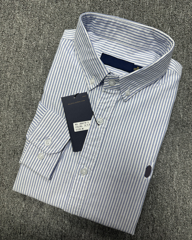 남성용 긴팔 셔츠 봄과 가을 사업 캐주얼 스트라이프 옥스포드 남성용 코튼 포니 라벨 청소년 셔츠 탑스토어 가기