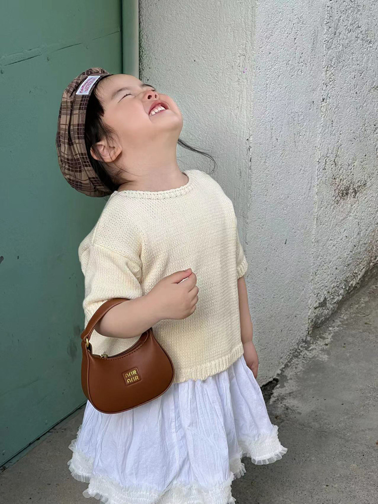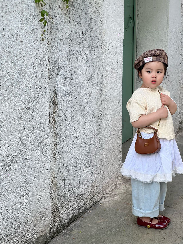 빈티지 어린이 작은 가방 여성의 2024 새로운 초승달 가방 솔리드 컬러 만두 백 통근 크로스 바디 가방 핸드 언더암 가방