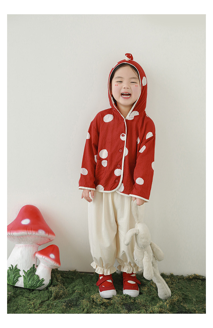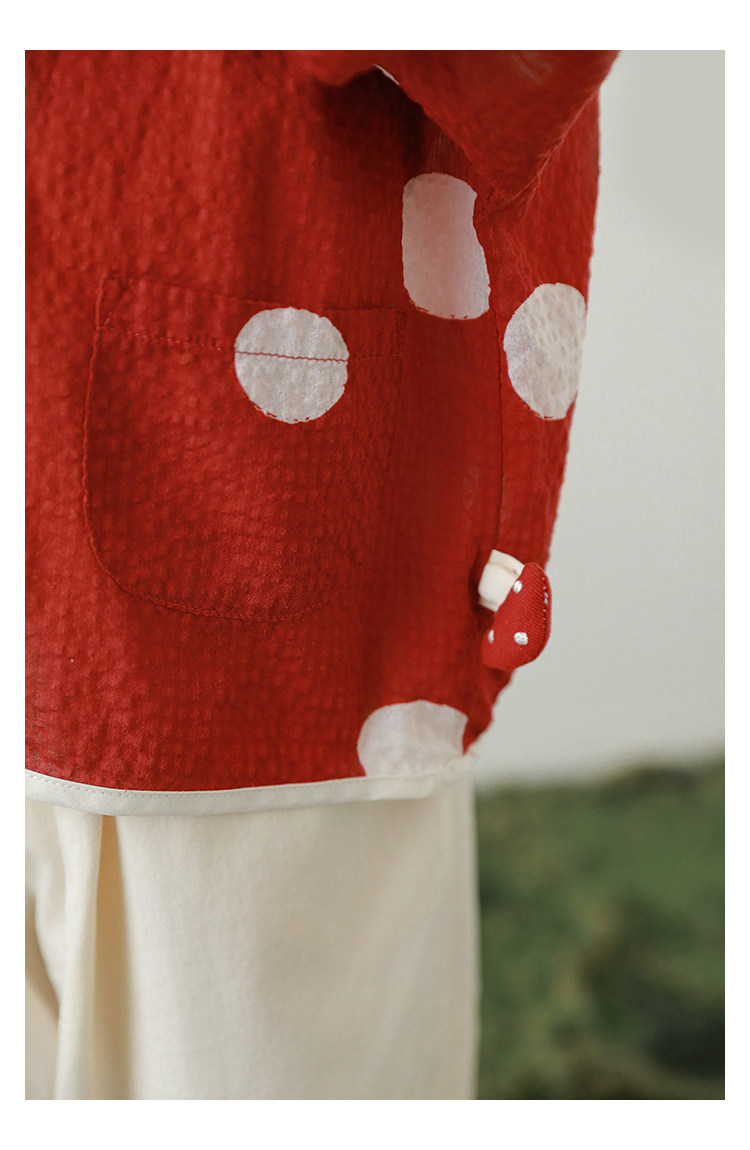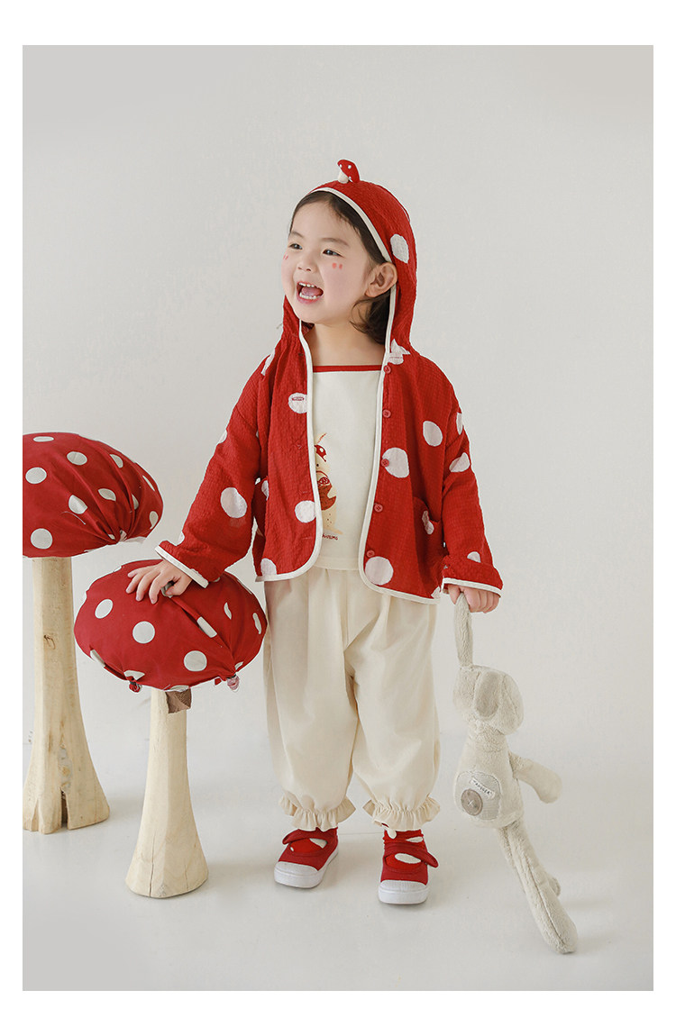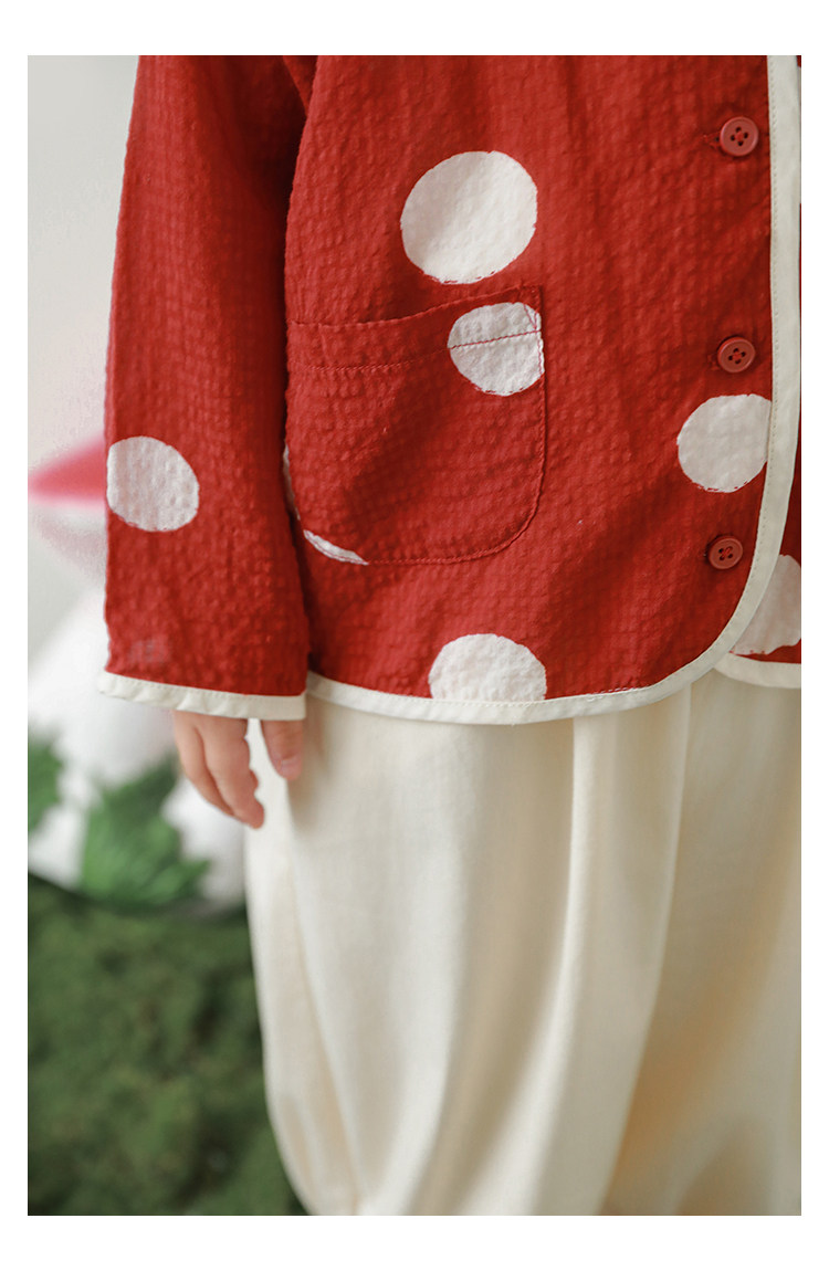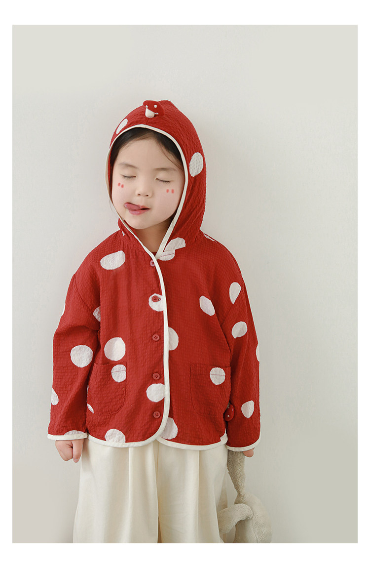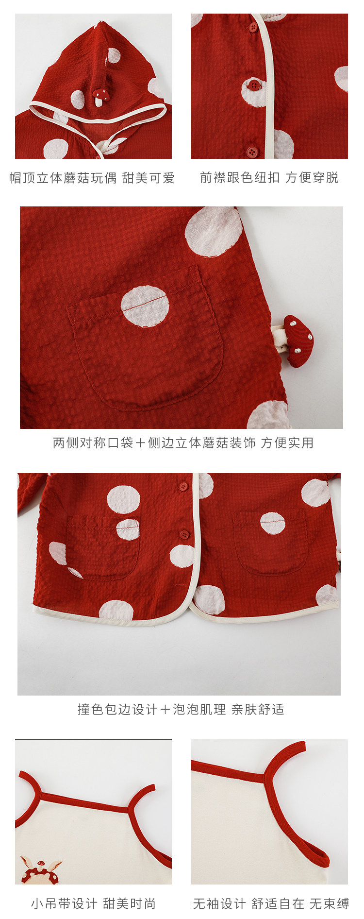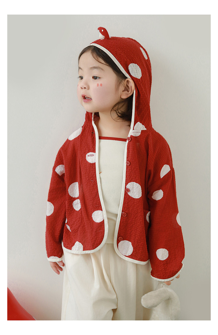 Wurib 소녀의 화려한 폴카 도트 여름 세트 귀여운 후드 코트 바지 대비 옷깃 셔츠 스커트