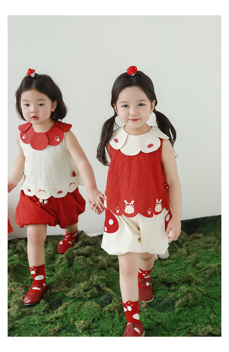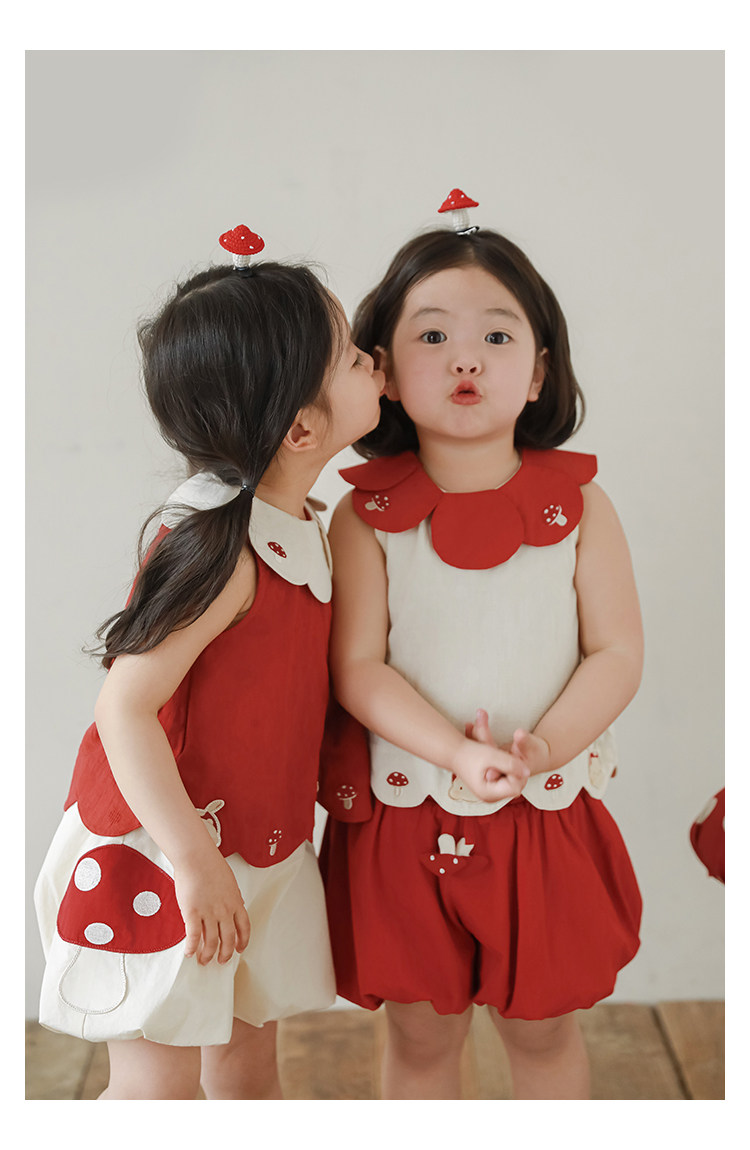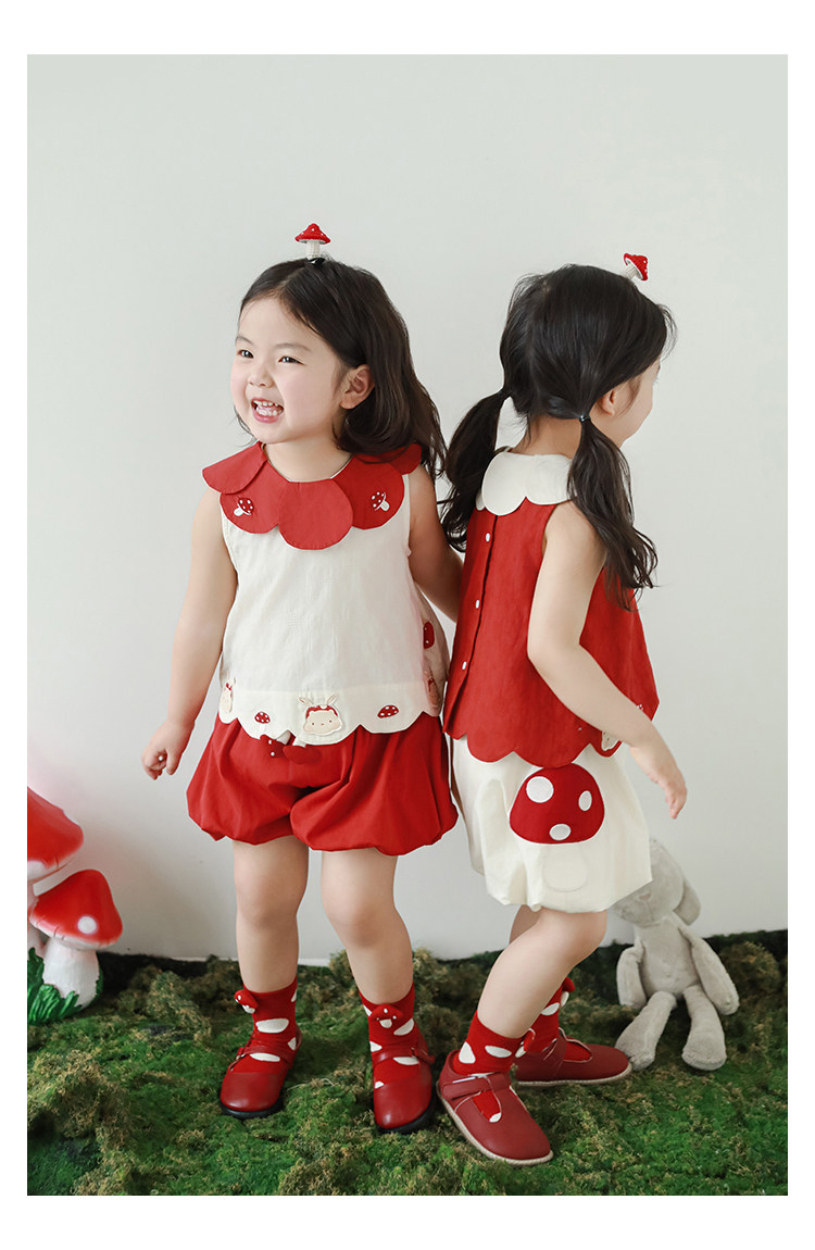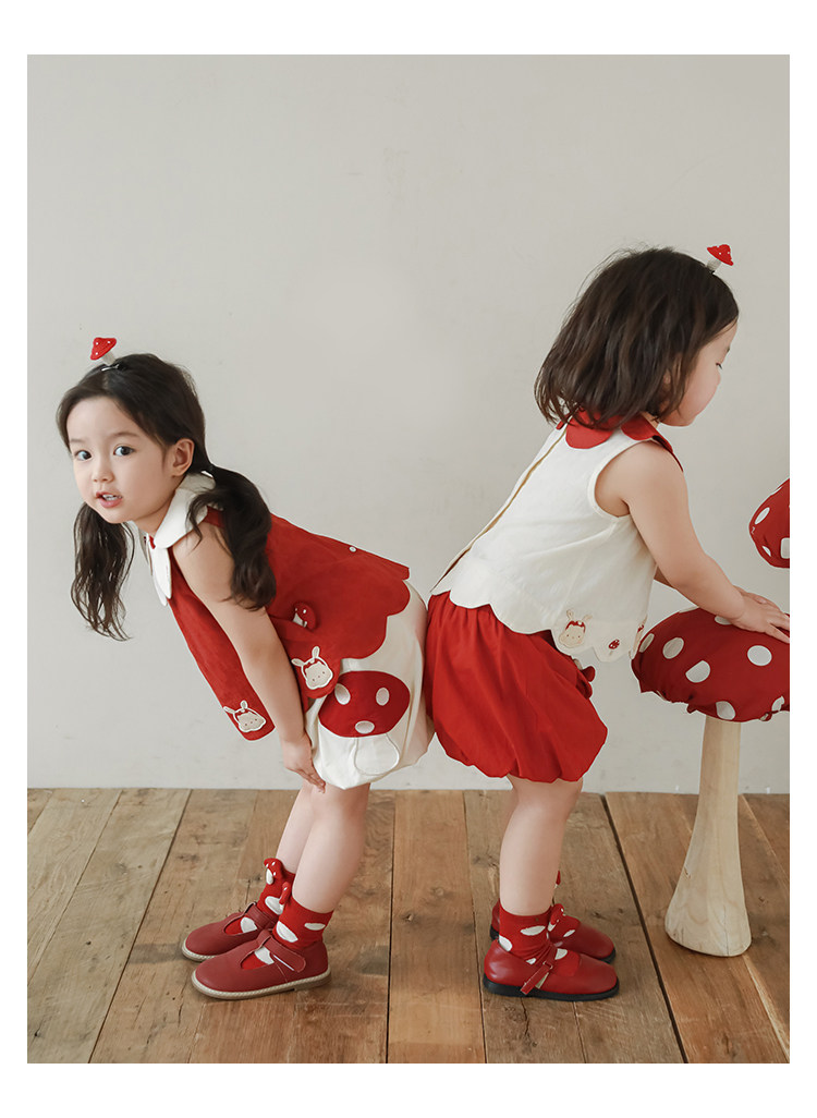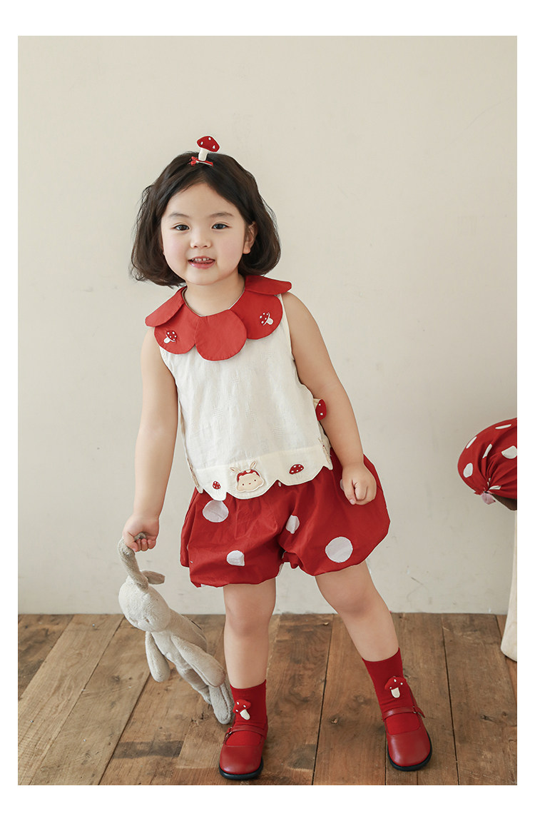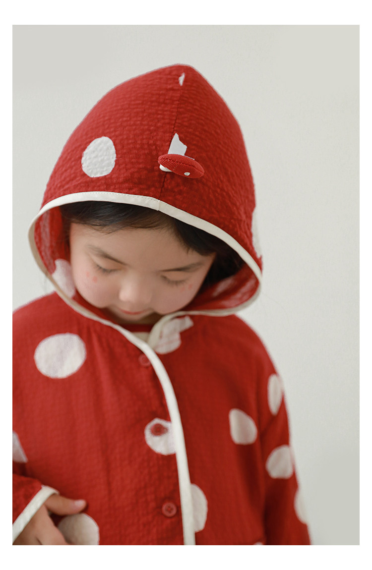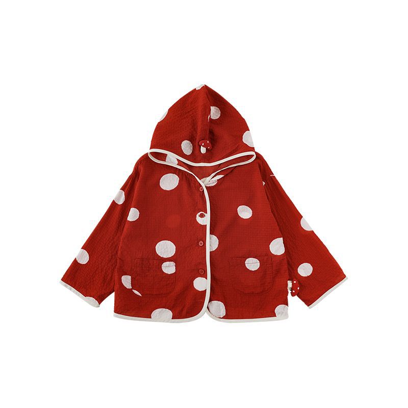 Wurib 소녀의 화려한 폴카 도트 여름 세트 귀여운 후드 코트 바지 대비 옷깃 셔츠 스커트