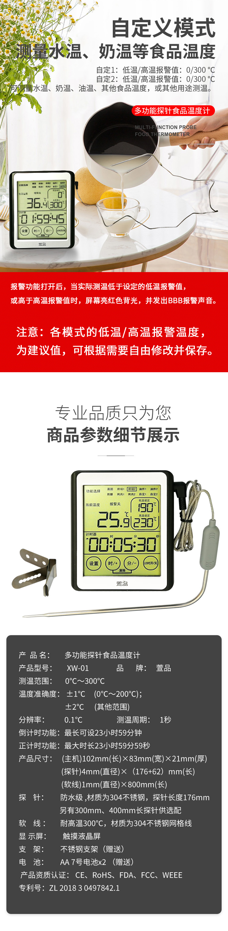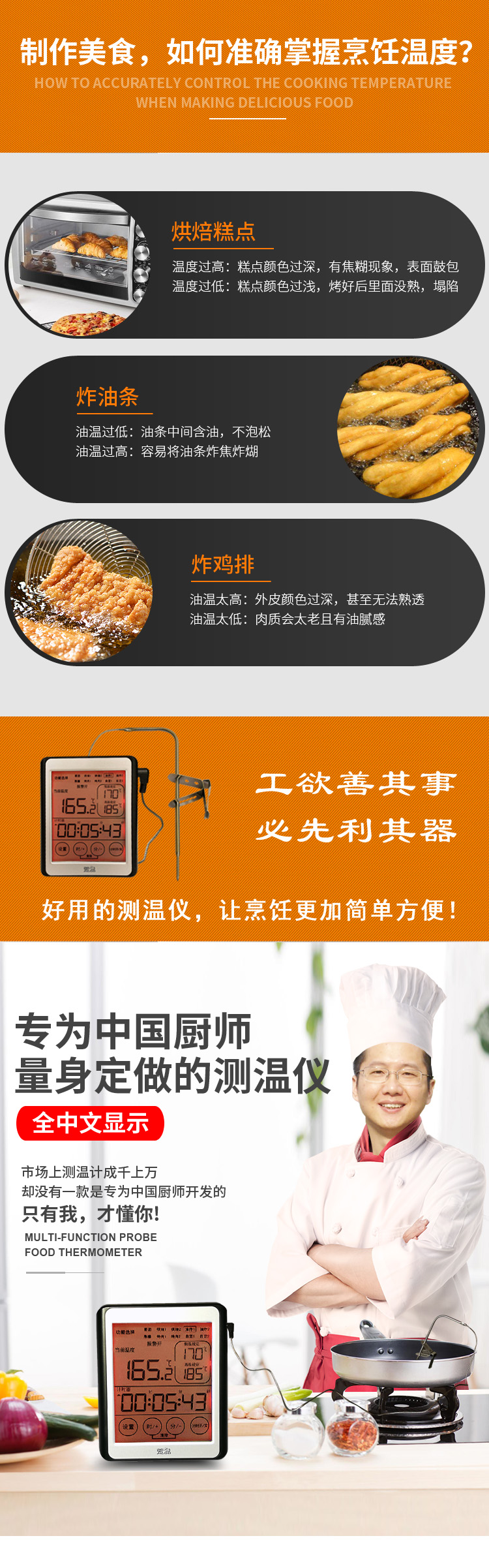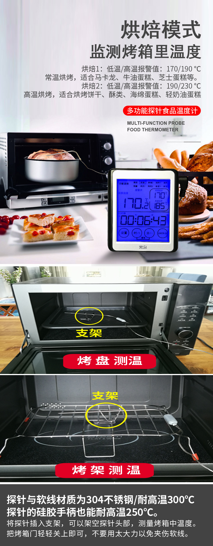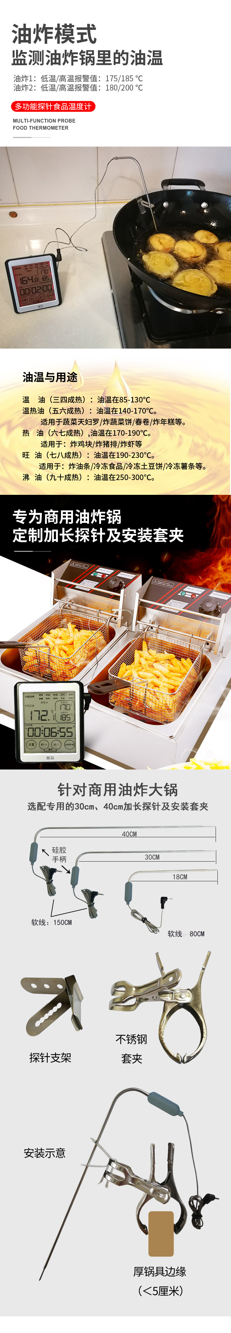오일 온도계 베이킹 온도계 설탕 끓이기 주방 프로브 유형 오일 팬 상업용 오븐 프라이팬 오일 온도계스토어 가기