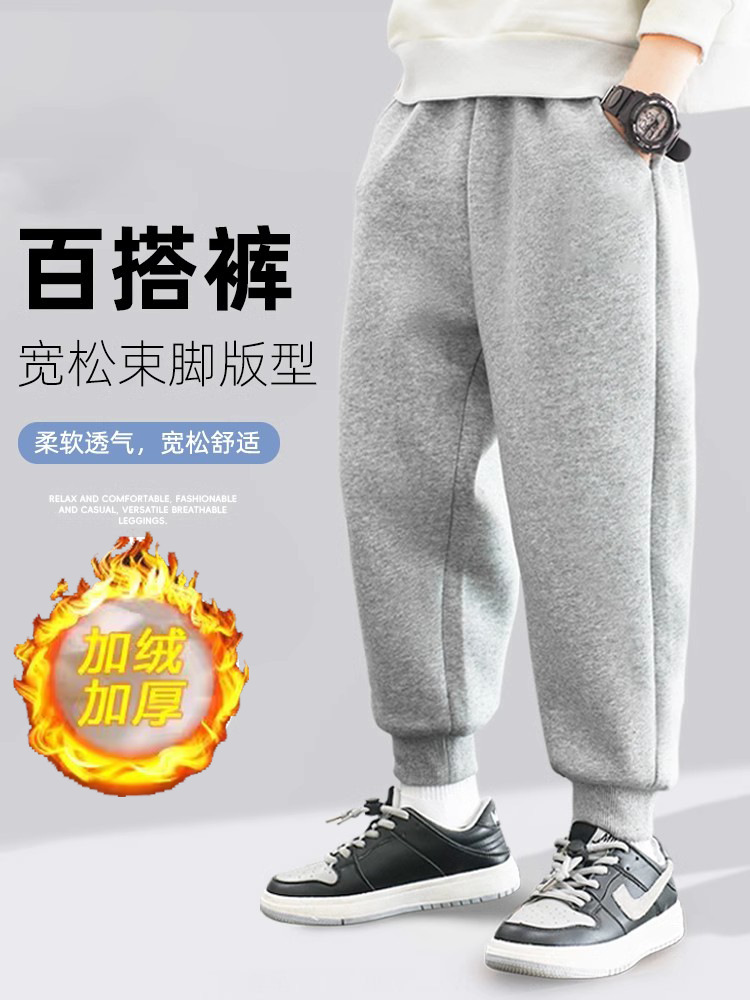 소년 소녀를위한 어린이 스포츠 바지 면화 기모 캐주얼 바지 가을과 겨울스토어 가기