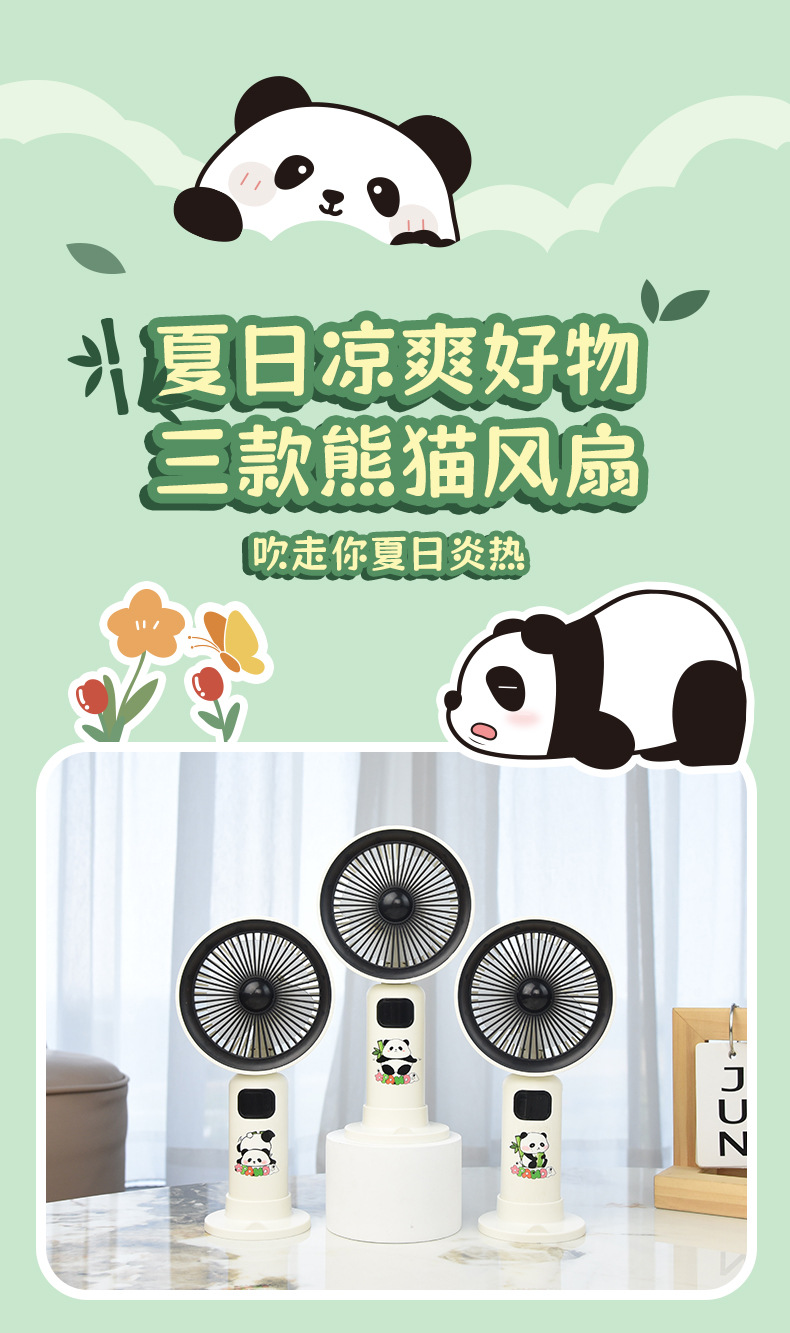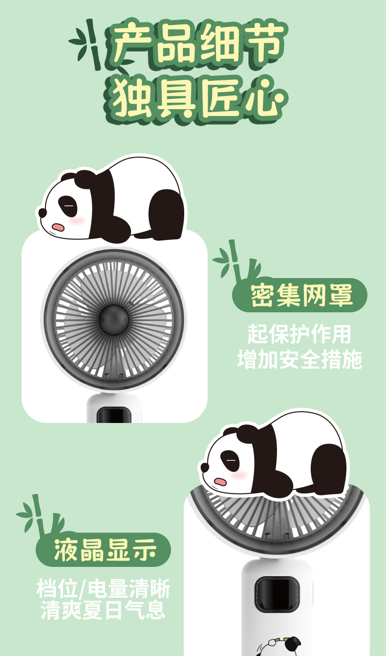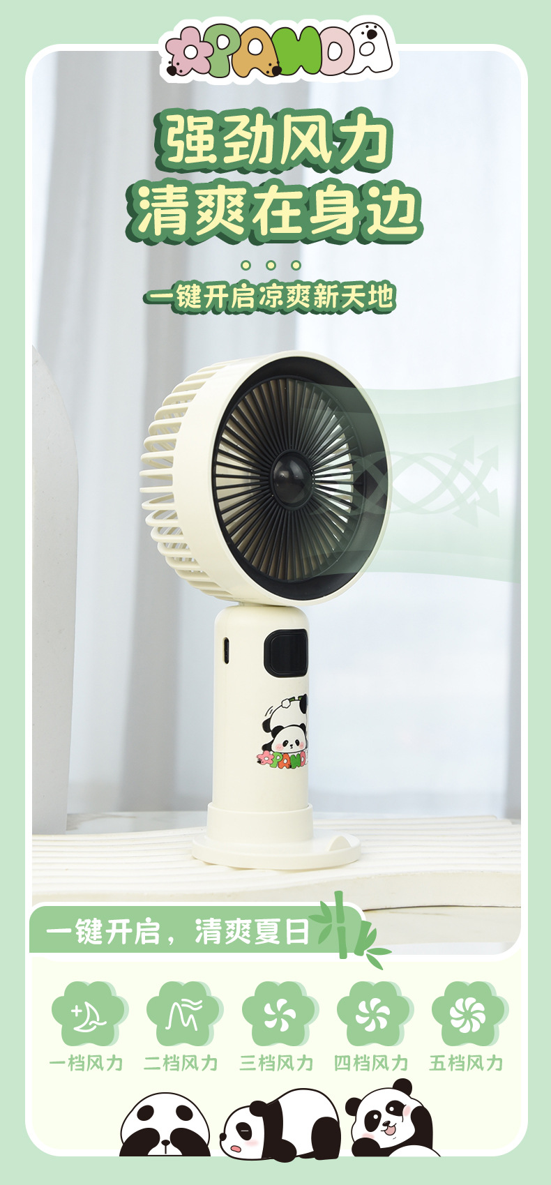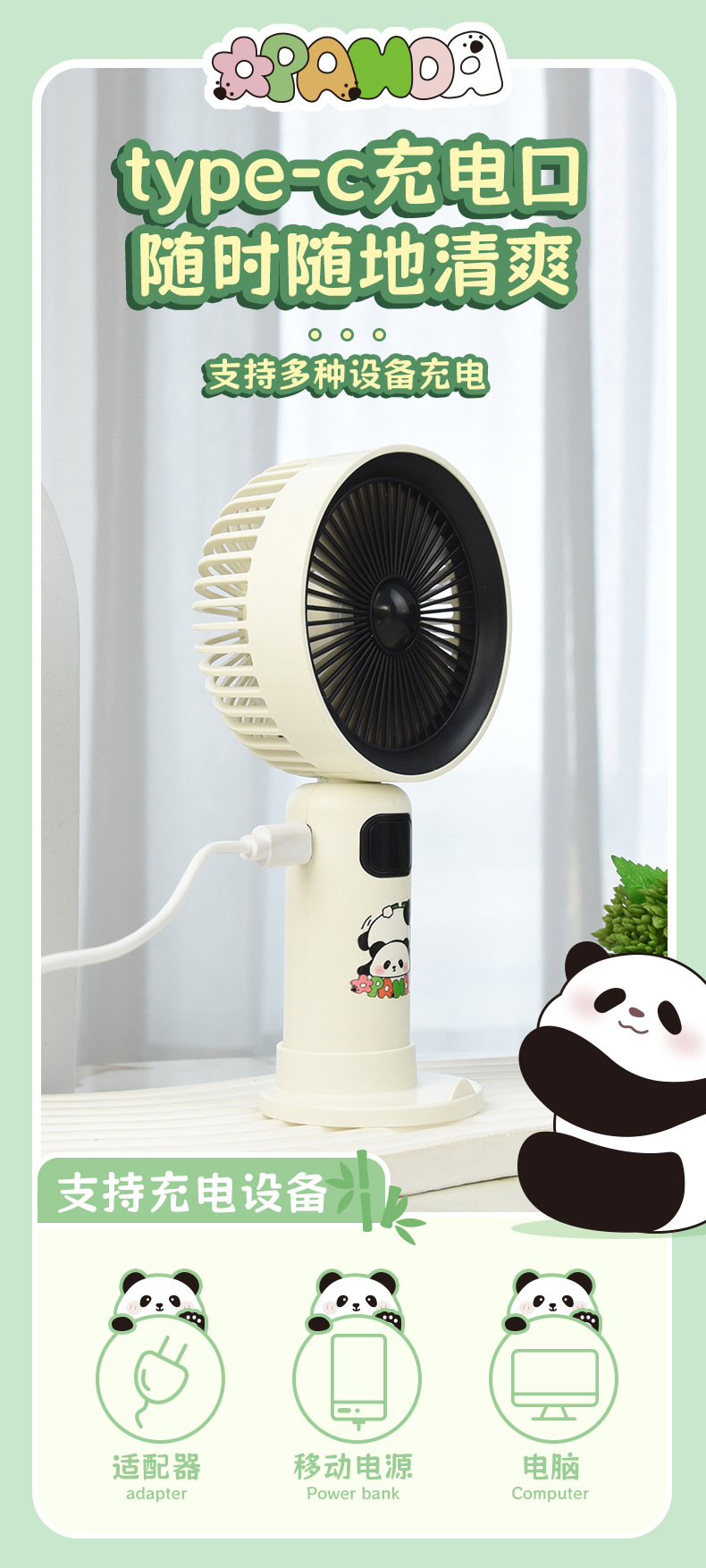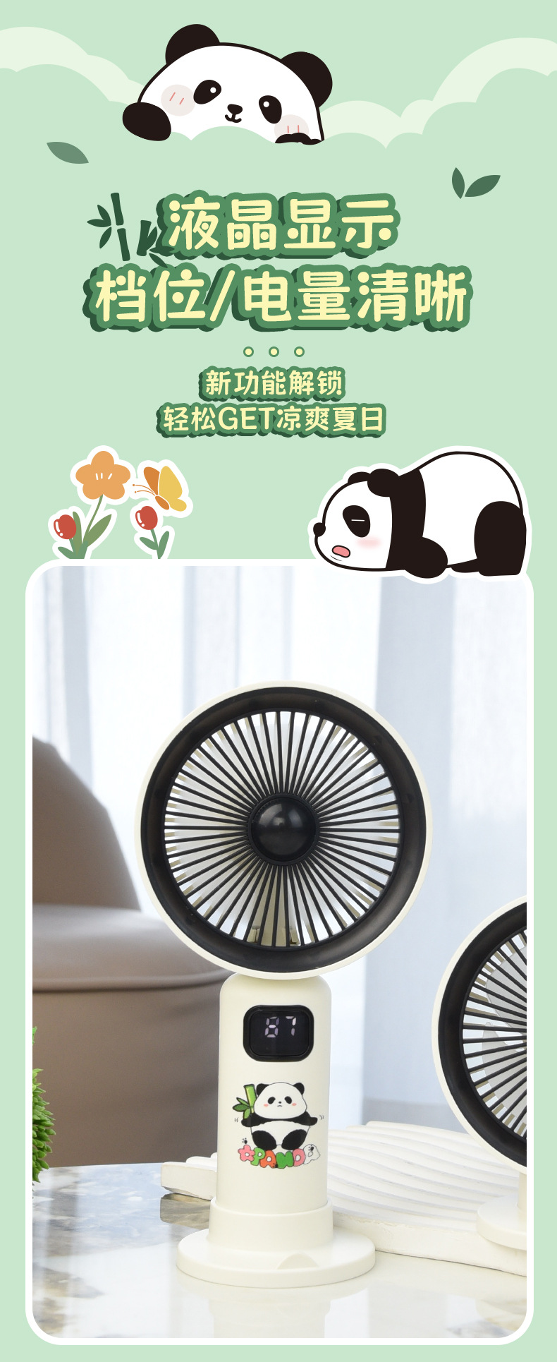 뚱뚱한 팬더 디지털 디스플레이 휴대용 팬 USB 충전식 데스크톱 디지털 디스플레이 시간 전기 팬 선물 공장스토어 가기