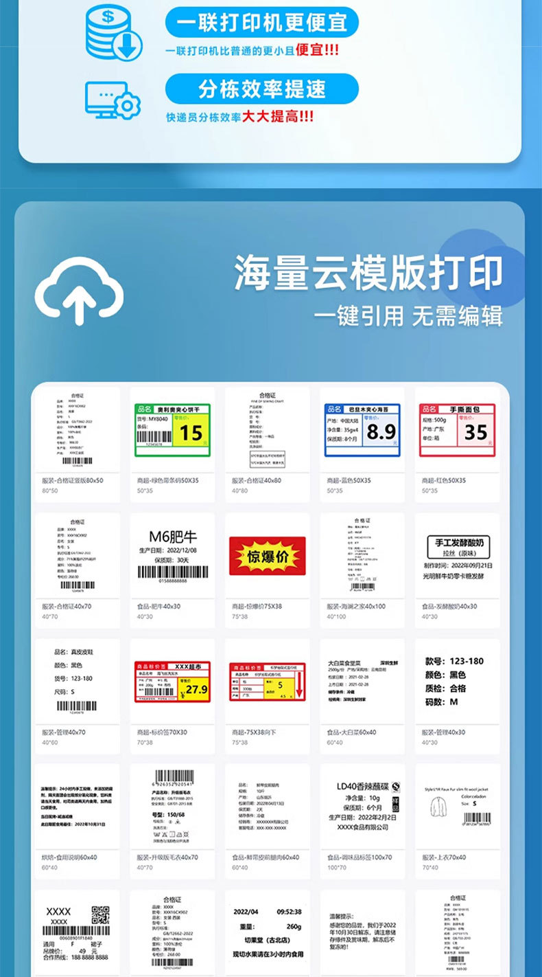 • 760D 컴퓨터 버전 [인쇄 폭 40-80mm] 무료 단일 시트 용지 100매