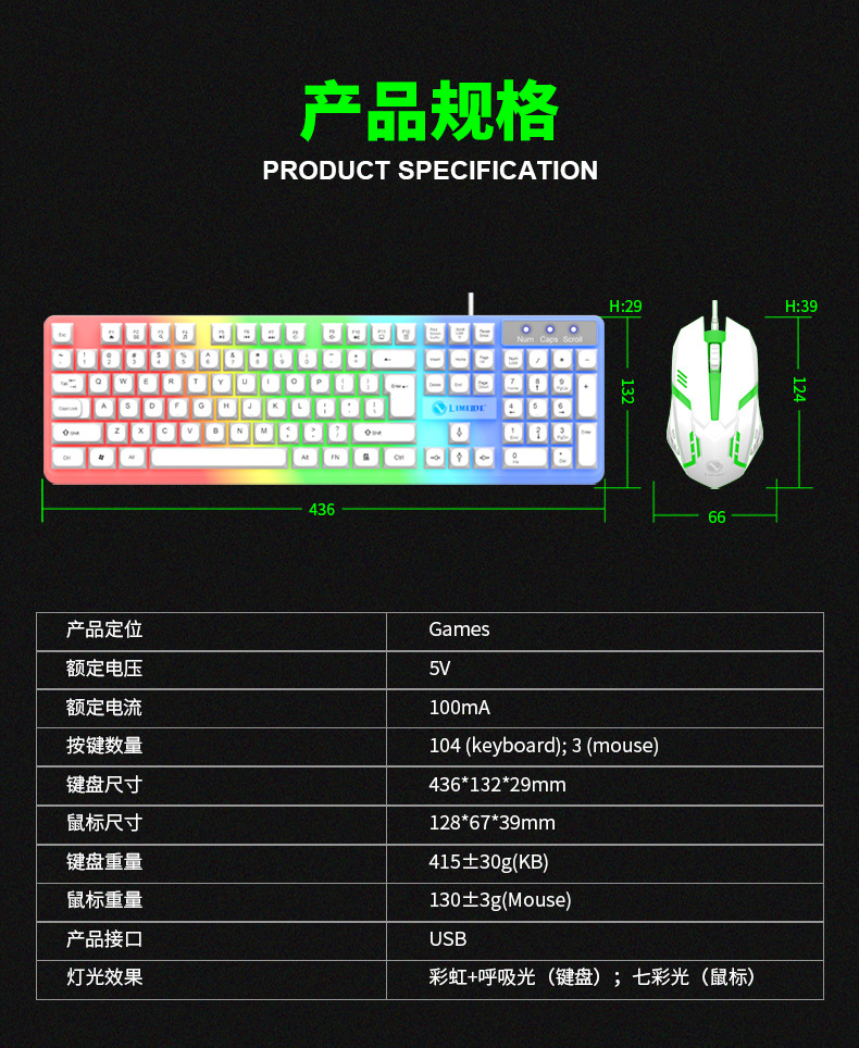 Gtx350 유선 발광 키보드 마우스 세트 러시아 아랍어 발광 기계 느낌 게임 컴퓨터스토어 가기