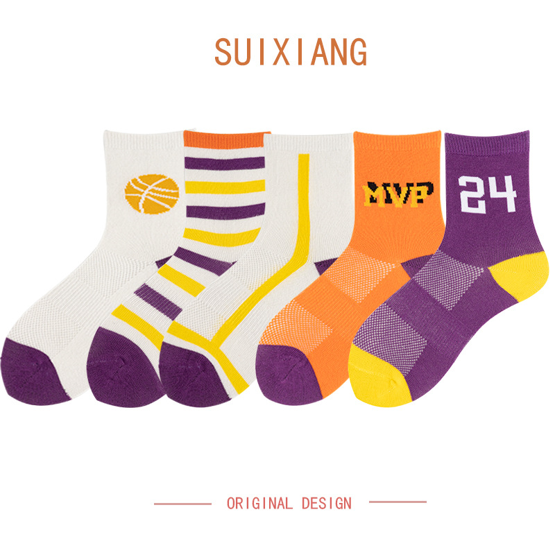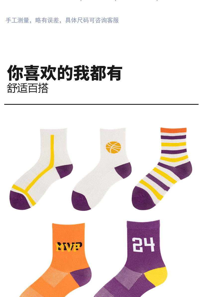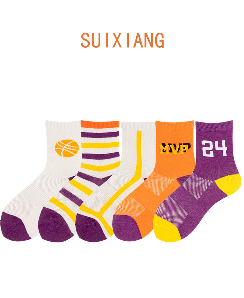 남성용 스포츠 양말 5켤레 세트, 중간 길이 양말, 트렌디한 땀 흡수 통기성 아기 농구 양말, 면 소재 긴 양말, 자카드 아기용스토어 가기