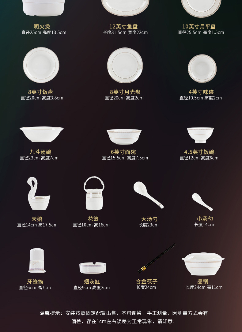 Jingdezhen 뼈 중국 식기 그릇 및 접시 조합 회사 선물 소스 공장 그릇 및 젓가락 세트 실용적인 선물 하나스토어 가기