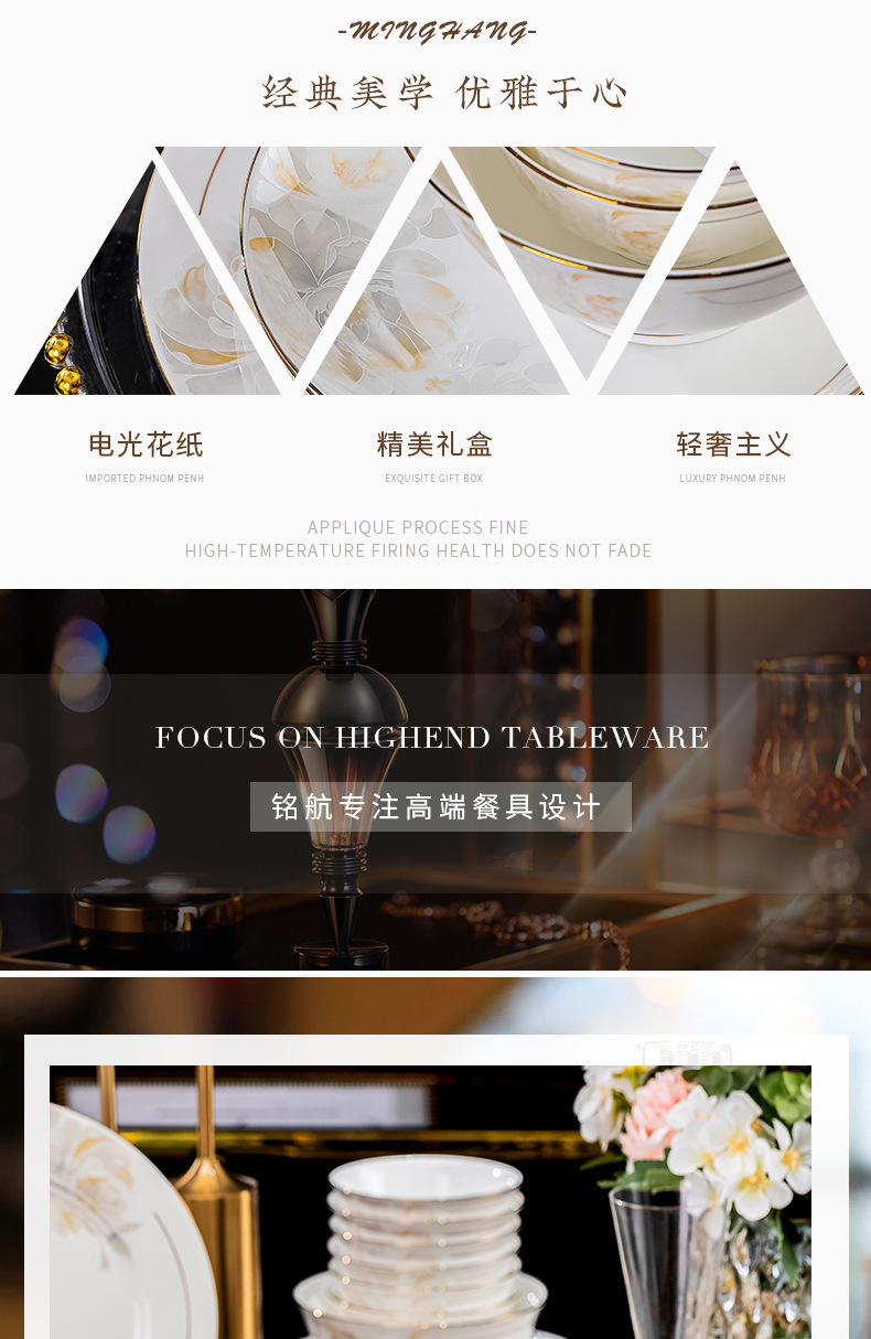 요리 세트 Jingdezhen 새로운 뼈 중국 식기 가정용 유럽식 요리와 젓가락 선물 전체 세트 도매스토어 가기