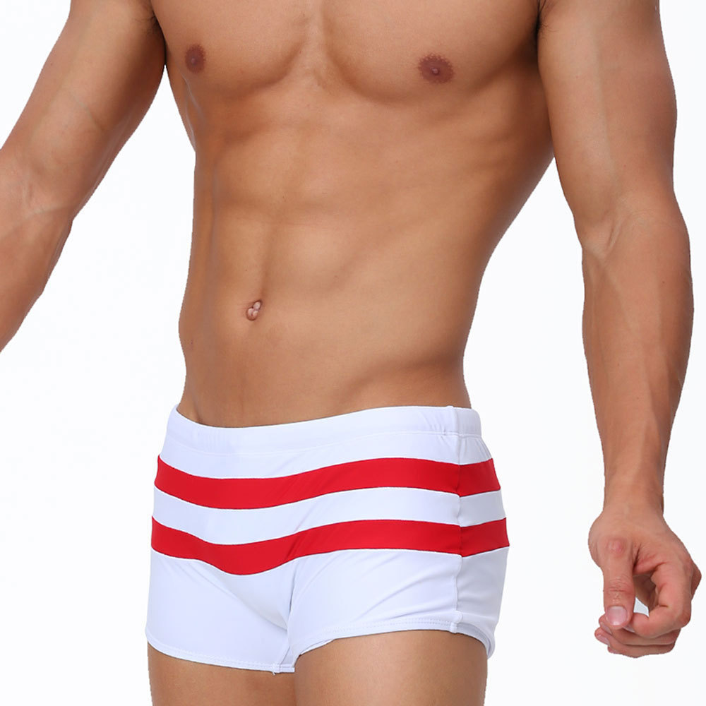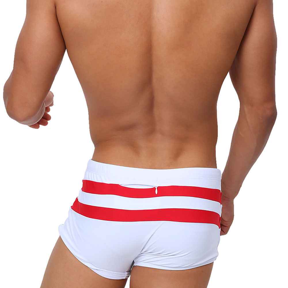UXH 남자 스트라이프 스티칭 솔리드 컬러 플랫 앵글 수영 트렁크 지퍼 포켓 간단한 두꺼운 피트니스 4 각 빠른 건조 남성스토어 가기