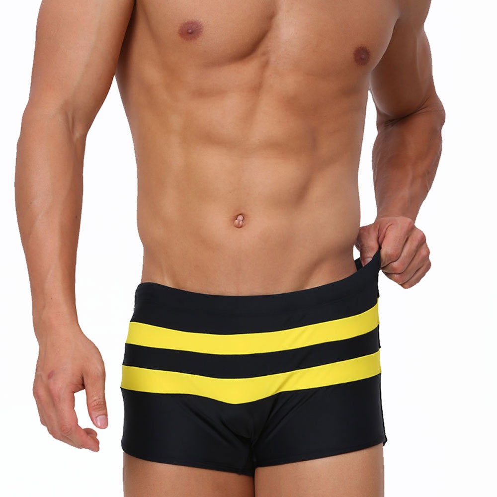 UXH 남자 스트라이프 스티칭 솔리드 컬러 플랫 앵글 수영 트렁크 지퍼 포켓 간단한 두꺼운 피트니스 4 각 빠른 건조 남성