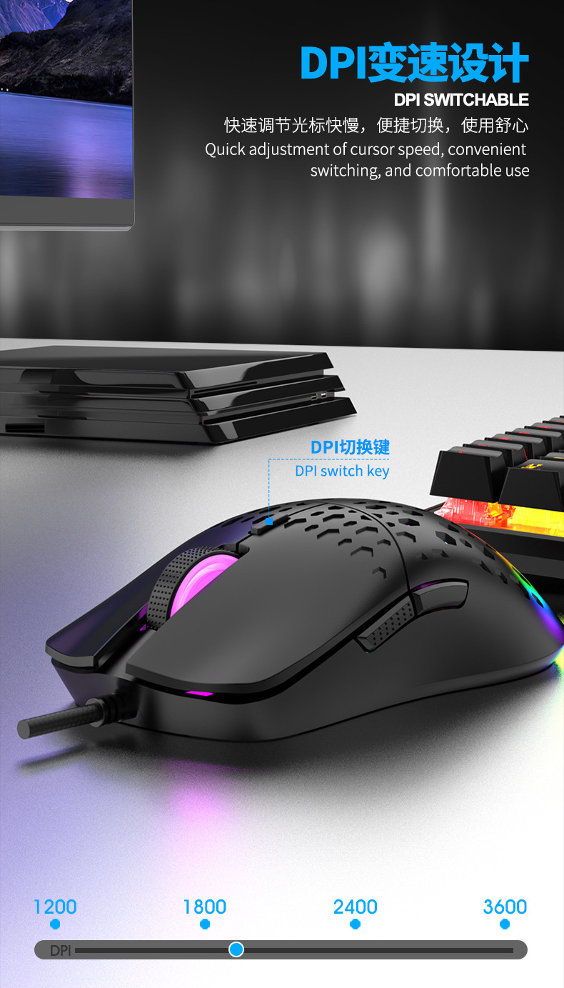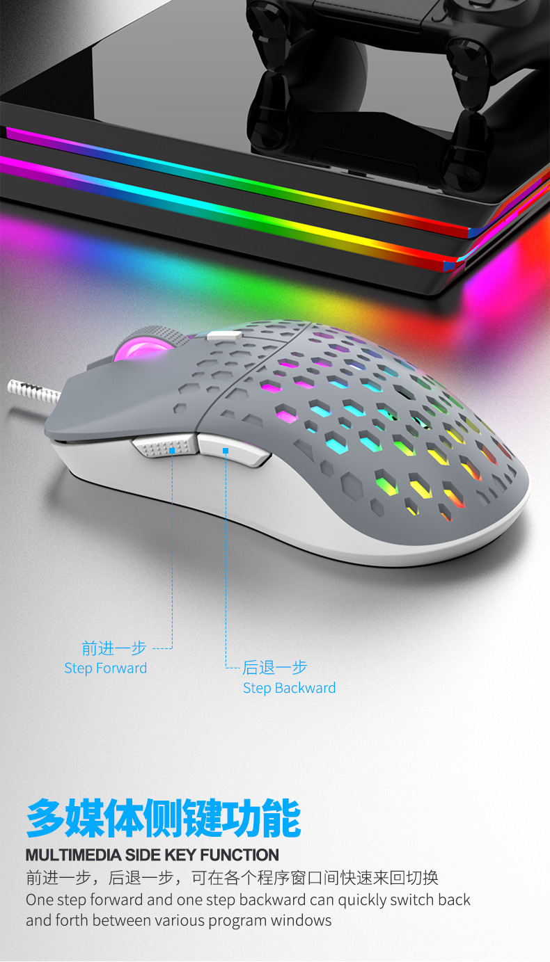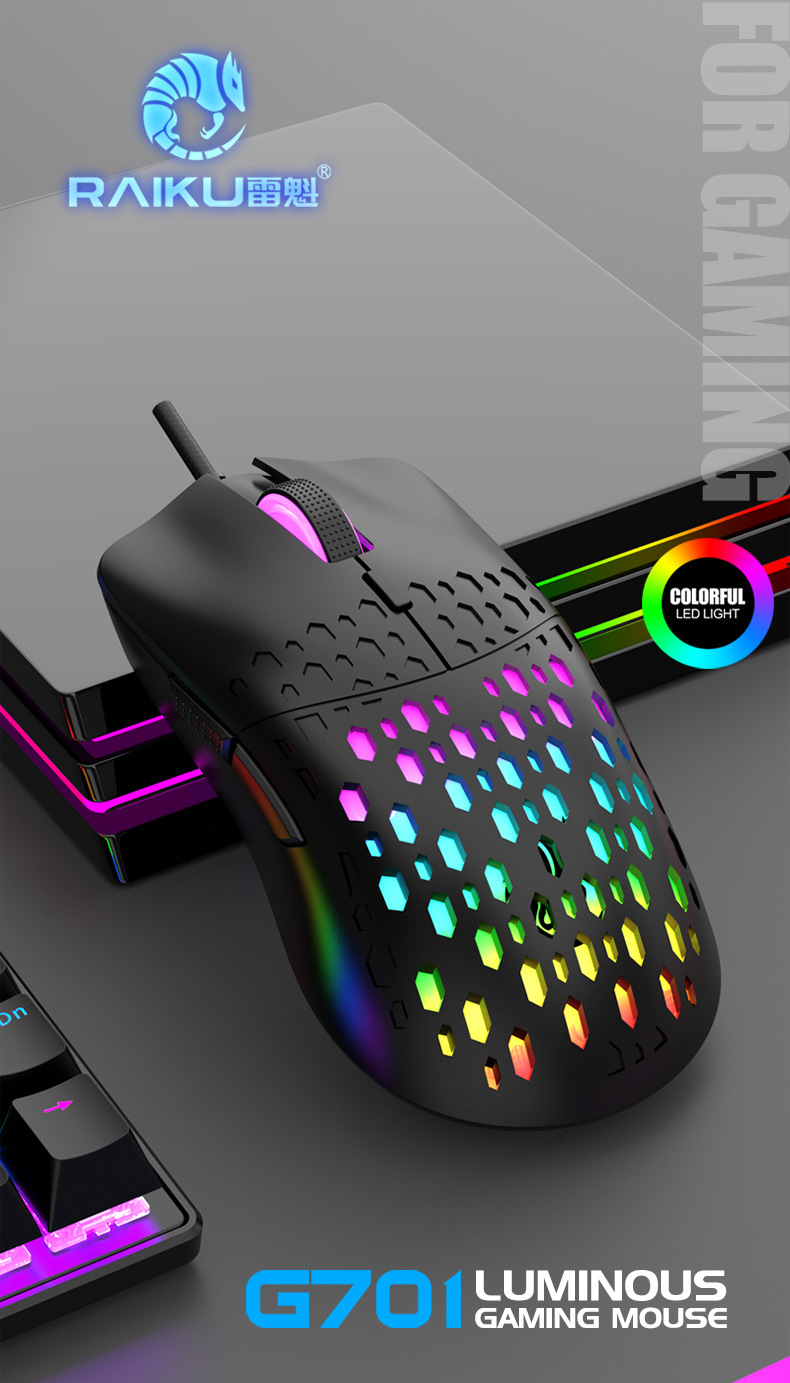 Lei Kui G701 게임 마우스 구멍 쿨 빛나는 꼰 와이어 유선 마우스 국경 아마존스토어 가기