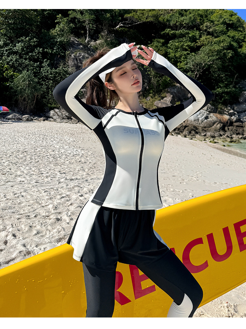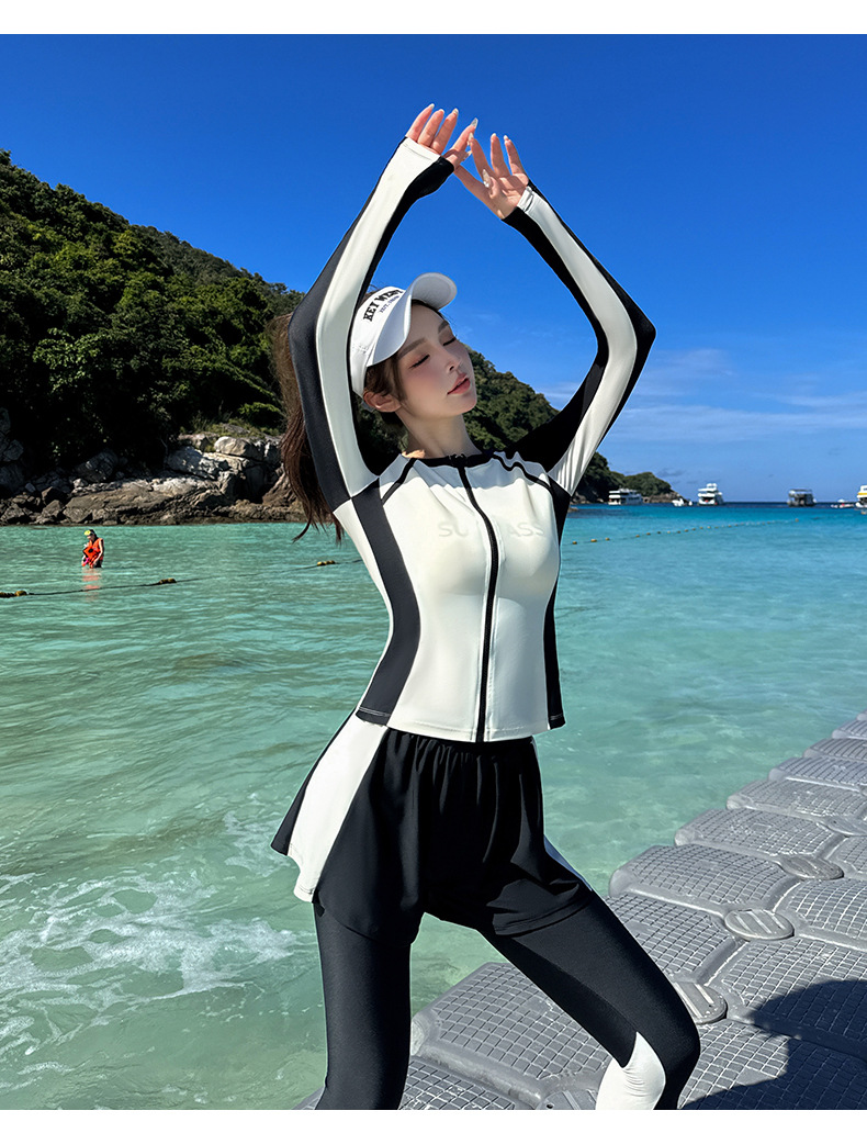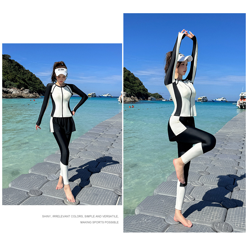 여성용 분리형 수영복 2025 신상 수영 패션 4피스 세트 보수적인 긴팔 긴바지 서핑 스노클링 잠수복스토어 가기