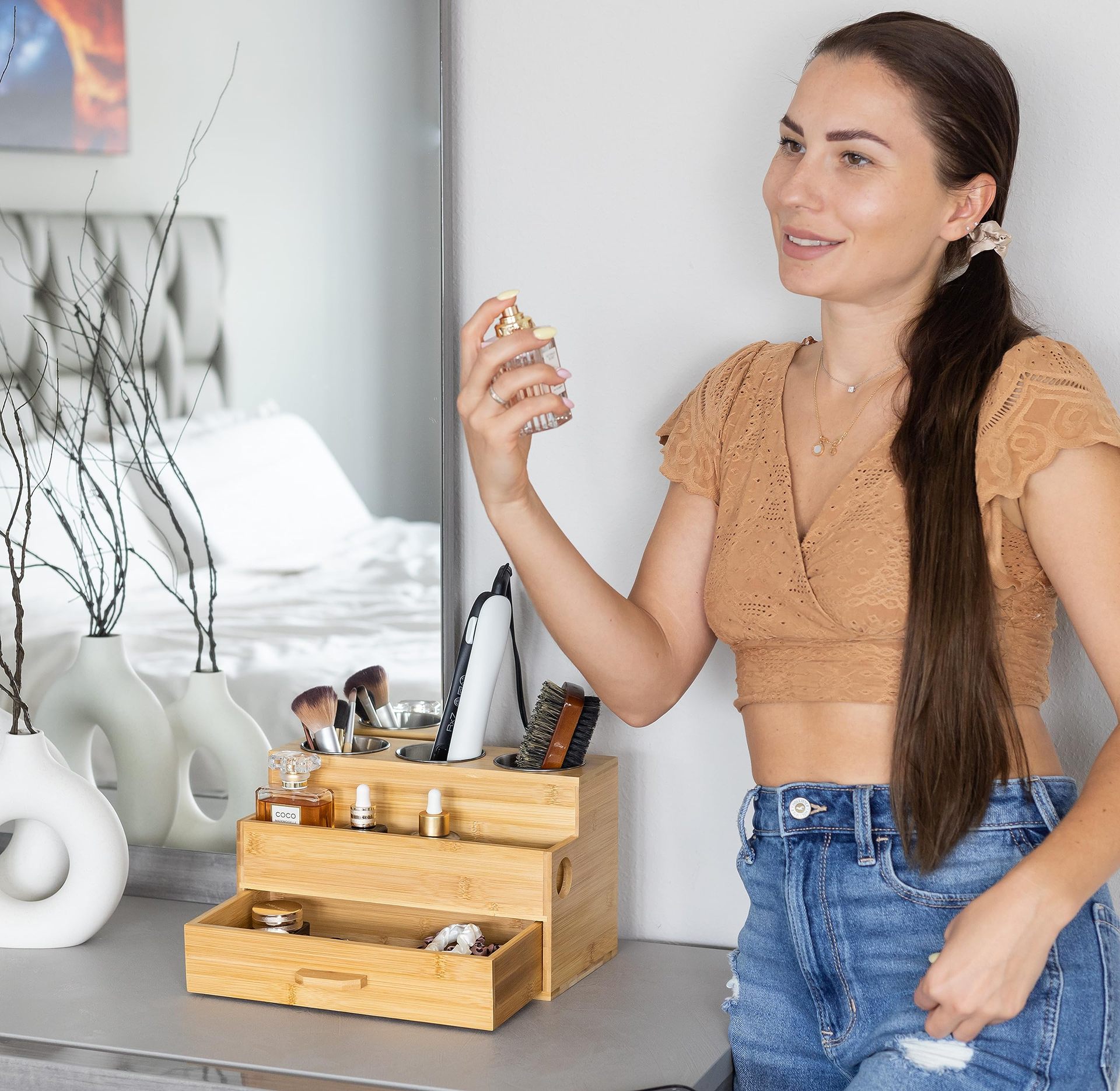 미용 도구 스토리지 박스 스타일링 랙 데스크탑 스토리지 랙 화장실 화장품 스토리지 박스 헤어 드라이어 브래킷스토어 가기