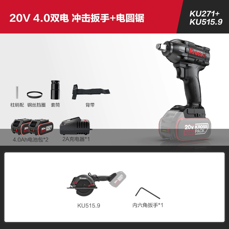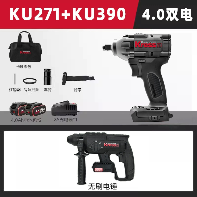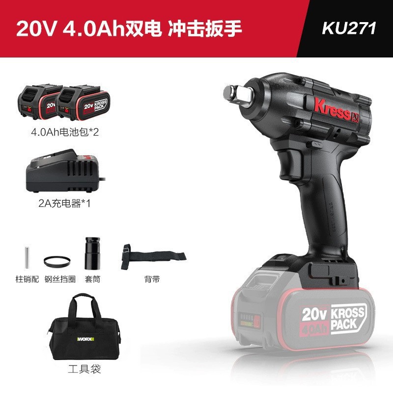 • KU271 전동 렌치 [4.0Ah 배터리 2개 및 충전기 1개 + 천 가방]